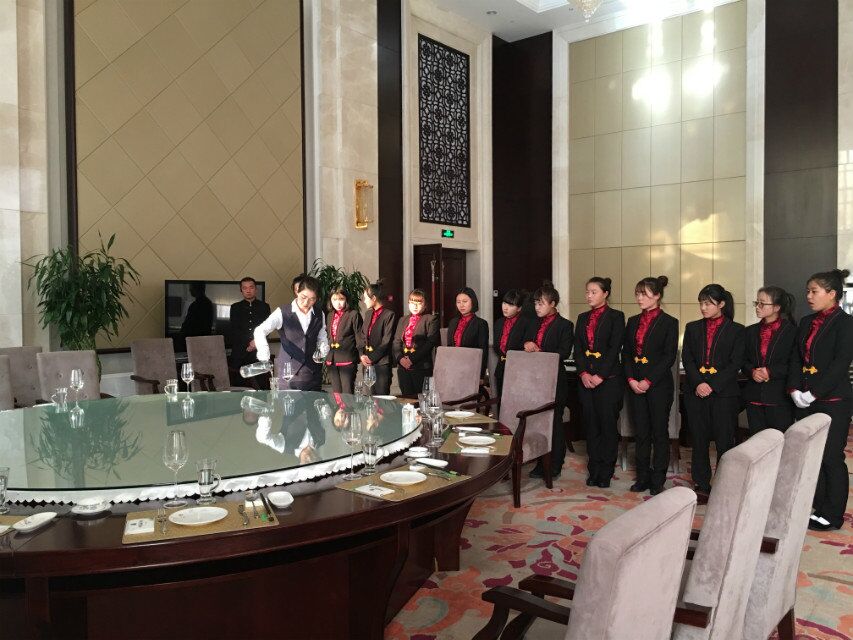 實(shí)訓(xùn)期間,同學(xué)們通過誦讀,軍訓(xùn)等方式體驗(yàn)了酒店的企業(yè)文化,在客房部,同學(xué)們向酒店客房服務(wù)員學(xué)習(xí)并實(shí)踐了如何對客房進(jìn)行清掃及查房,熟悉了客房部的日常工作規(guī)程;在餐飲部實(shí)習(xí)中,同學(xué)們向資深的餐廳服務(wù)員學(xué)習(xí)了如何擺臺、撤臺、點(diǎn)菜、上菜等一系列基本的餐廳服務(wù)方法,并對餐廳的服務(wù)流程有了具體的了解。