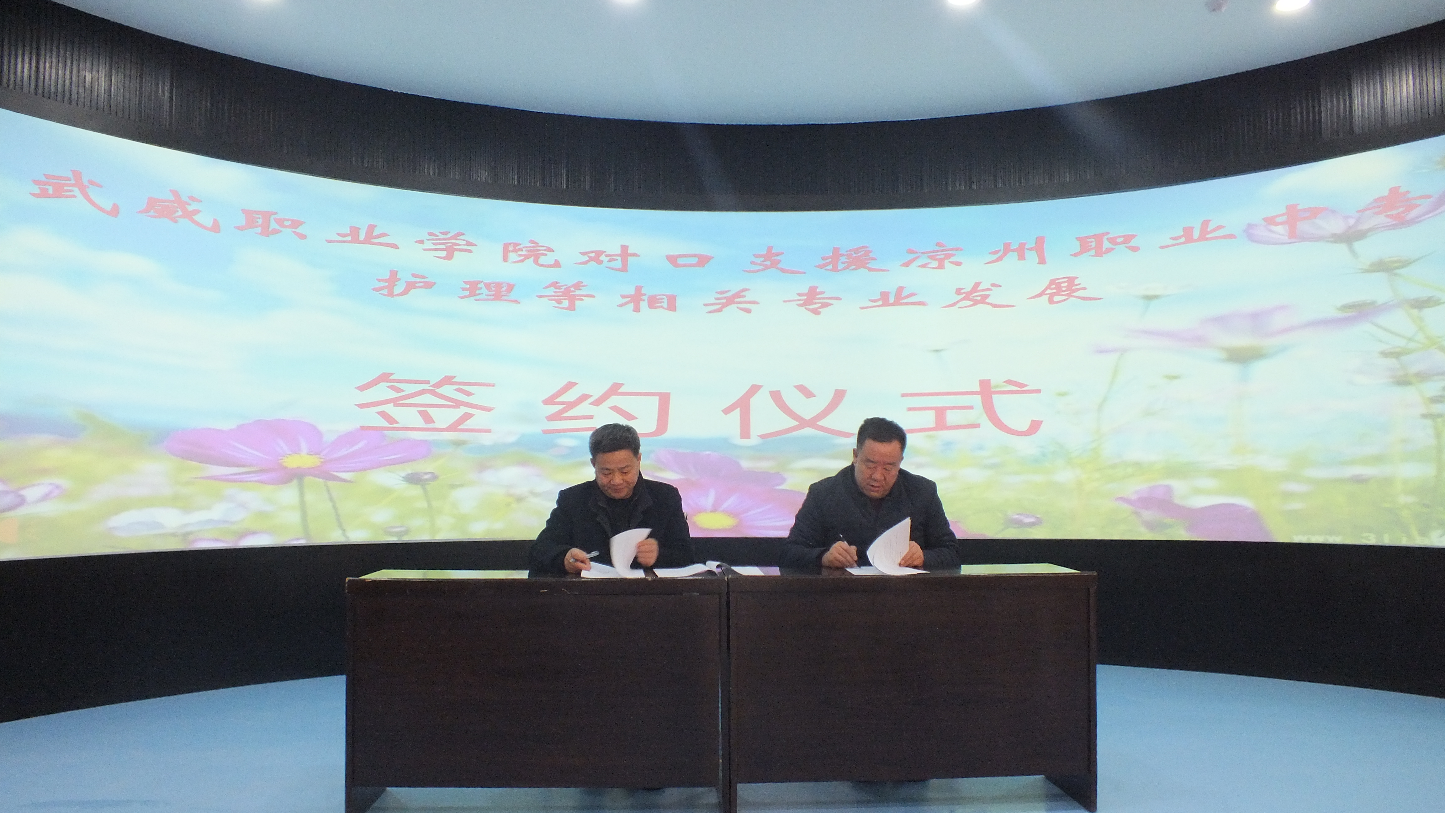 12月13日,學院與涼州區(qū)職業(yè)中專簽訂《武威職業(yè)學院對口支援涼州職業(yè)中專護理等相關專業(yè)發(fā)展協(xié)議》。學院黨委副書記趙明,涼州區(qū)職業(yè)中專校長何生玉,副校長張同禎、任鋒,學院護理系黨總支書記張建輝等參加了簽字儀式。