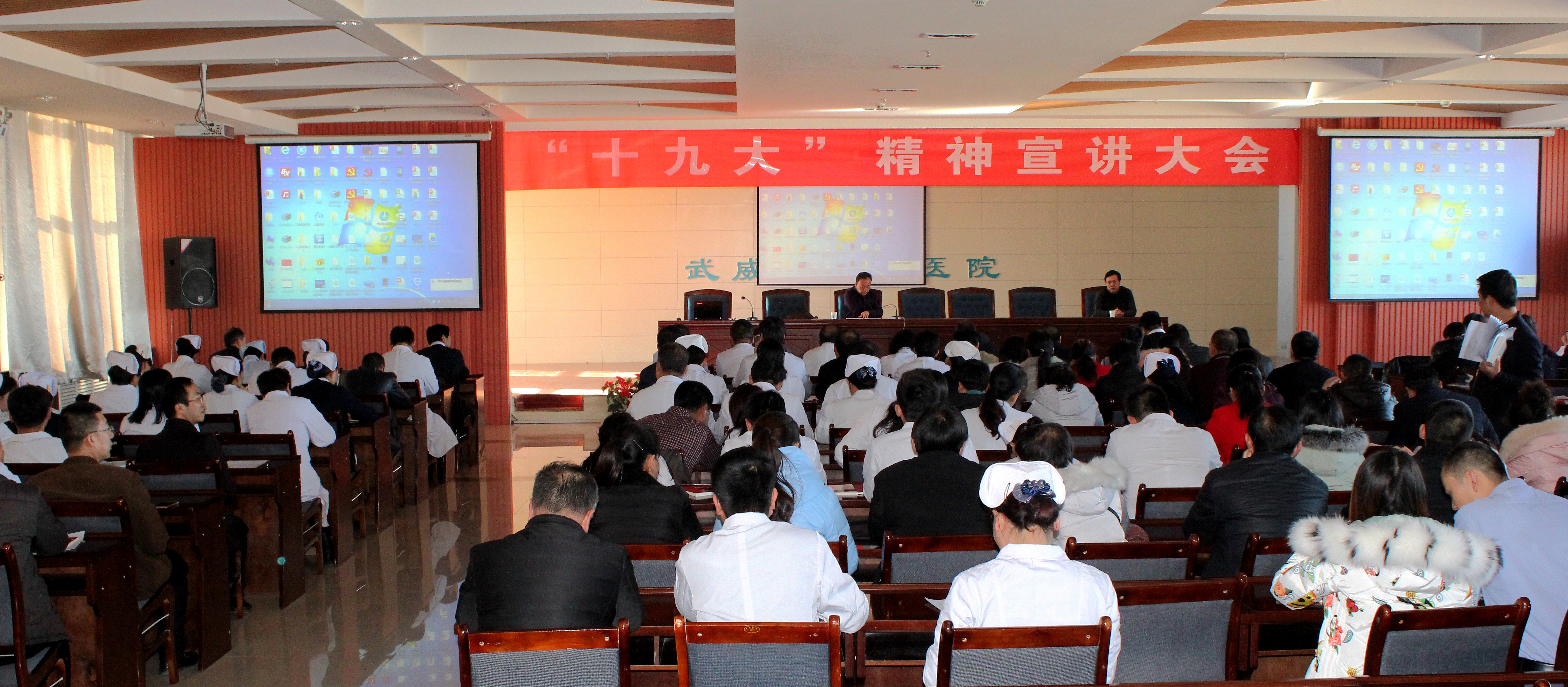 12月27日,直屬附屬醫(yī)院在內(nèi)科七樓舉行黨的十九大精神宣講報(bào)告大會(huì)。會(huì)議邀請(qǐng)武威市委講師團(tuán)副團(tuán)長張生龍作宣講報(bào)告。直屬附屬醫(yī)院黨委書記陳鋼主持報(bào)告會(huì)。醫(yī)院全體共產(chǎn)黨員、中層以上干部160余人聆聽了宣講報(bào)告。