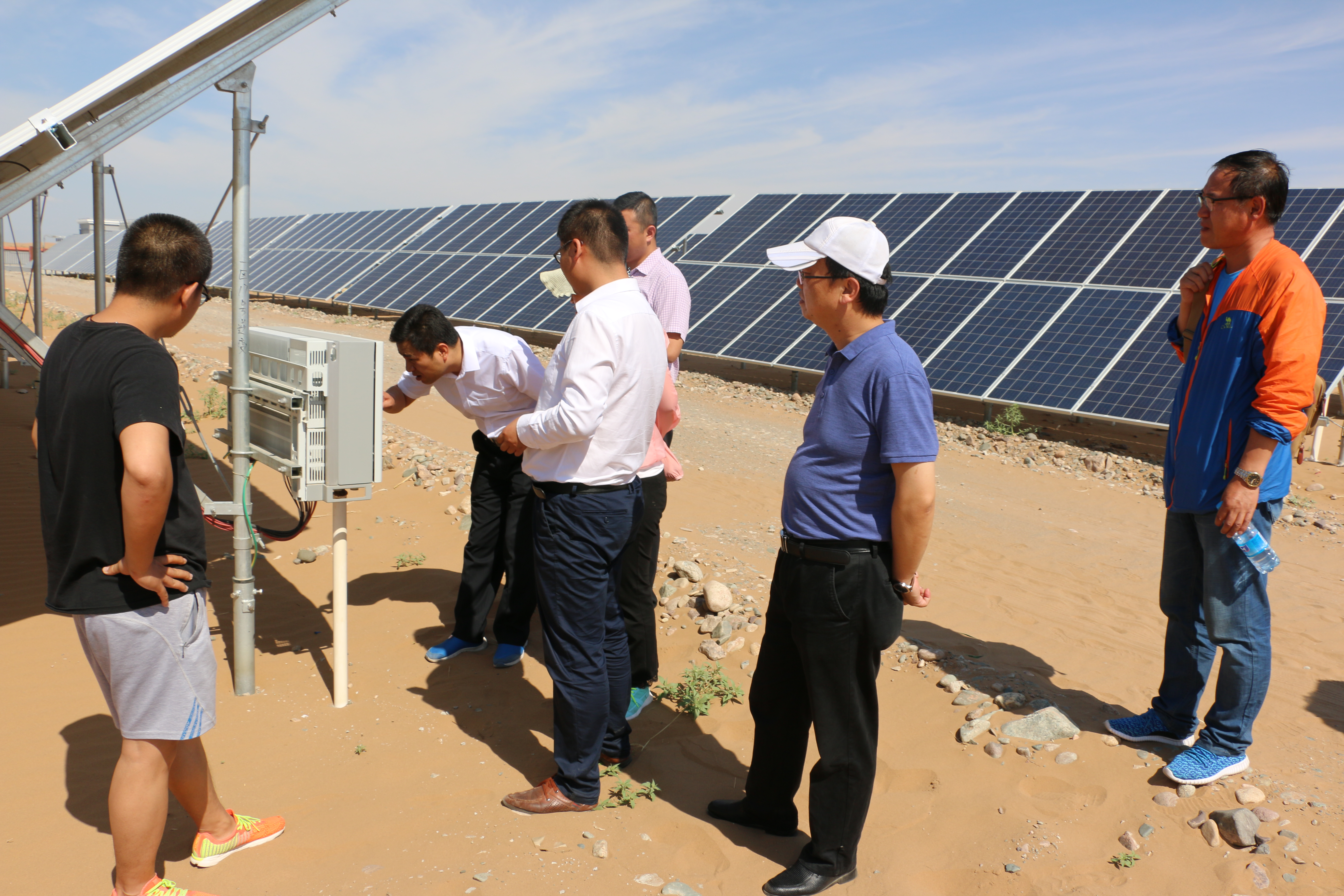 ? ? ?全體教師在電站技術(shù)人員帶領(lǐng)下,依次深入值班調(diào)度室、控制柜室、SVG室(無功功率補(bǔ)償)、110升壓變電站、開關(guān)柜室以及光伏陣列進(jìn)行觀摩學(xué)習(xí),全體教師在調(diào)度室查看監(jiān)控系統(tǒng),查看分析設(shè)備運(yùn)行情況等,通過現(xiàn)場培訓(xùn)學(xué)習(xí),使老師們近距離熟悉了光伏支架,組件陣列、逆變器、控制器、匯流箱、配電柜等設(shè)備的安裝施工,實踐學(xué)習(xí)了光伏系統(tǒng)集成設(shè)計以及并網(wǎng)技術(shù)等,特別是對光伏電站運(yùn)行安全操作規(guī)程進(jìn)行了系統(tǒng)掌握。