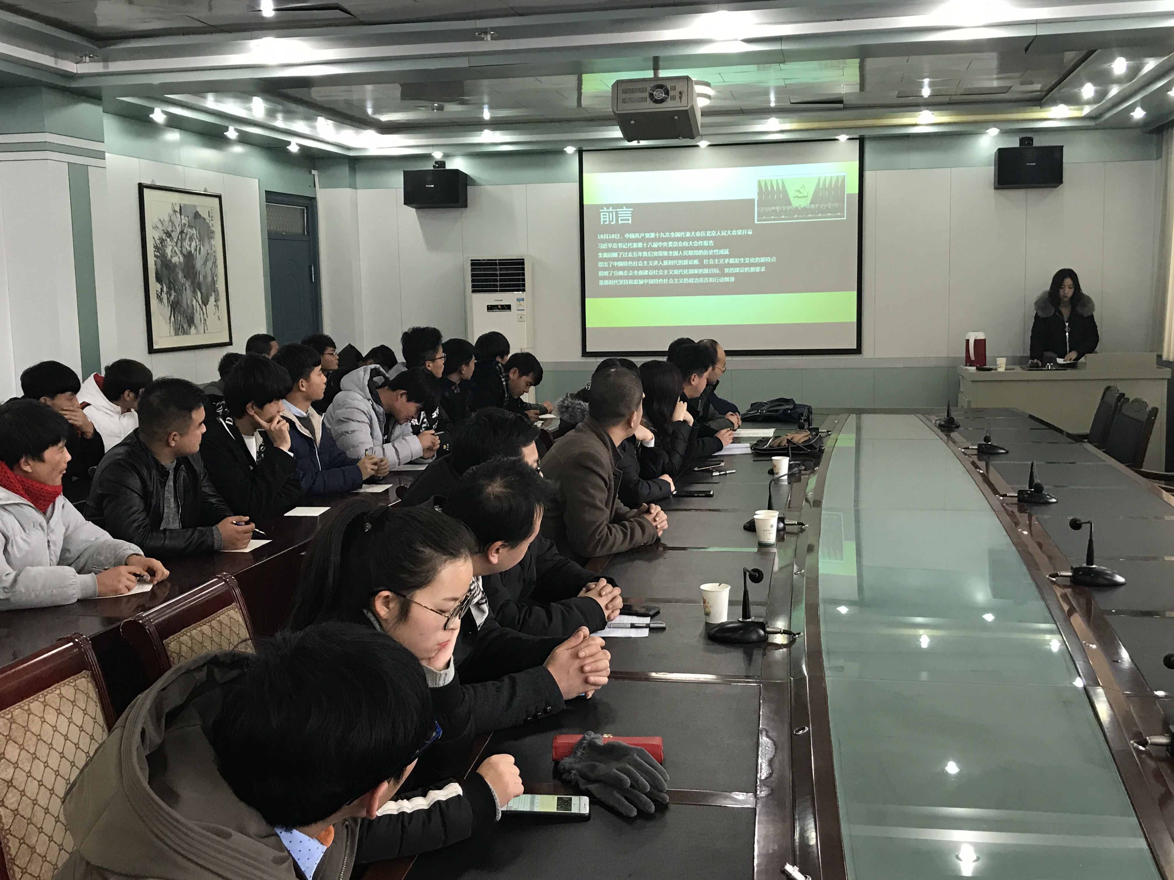 根據(jù)《中共武威職業(yè)學院委員會關于深入學習宣傳貫徹黨的十九大精神的通知》精神,1月4日下午,建筑工程系邀請思政教研室侯卿老師,在博學樓二樓會議室,為全系黨員、教師、入黨積極分子和團學干部做關于學習貫徹黨的十九大精神宣講。會議由系黨總支書記聶百勝主持。