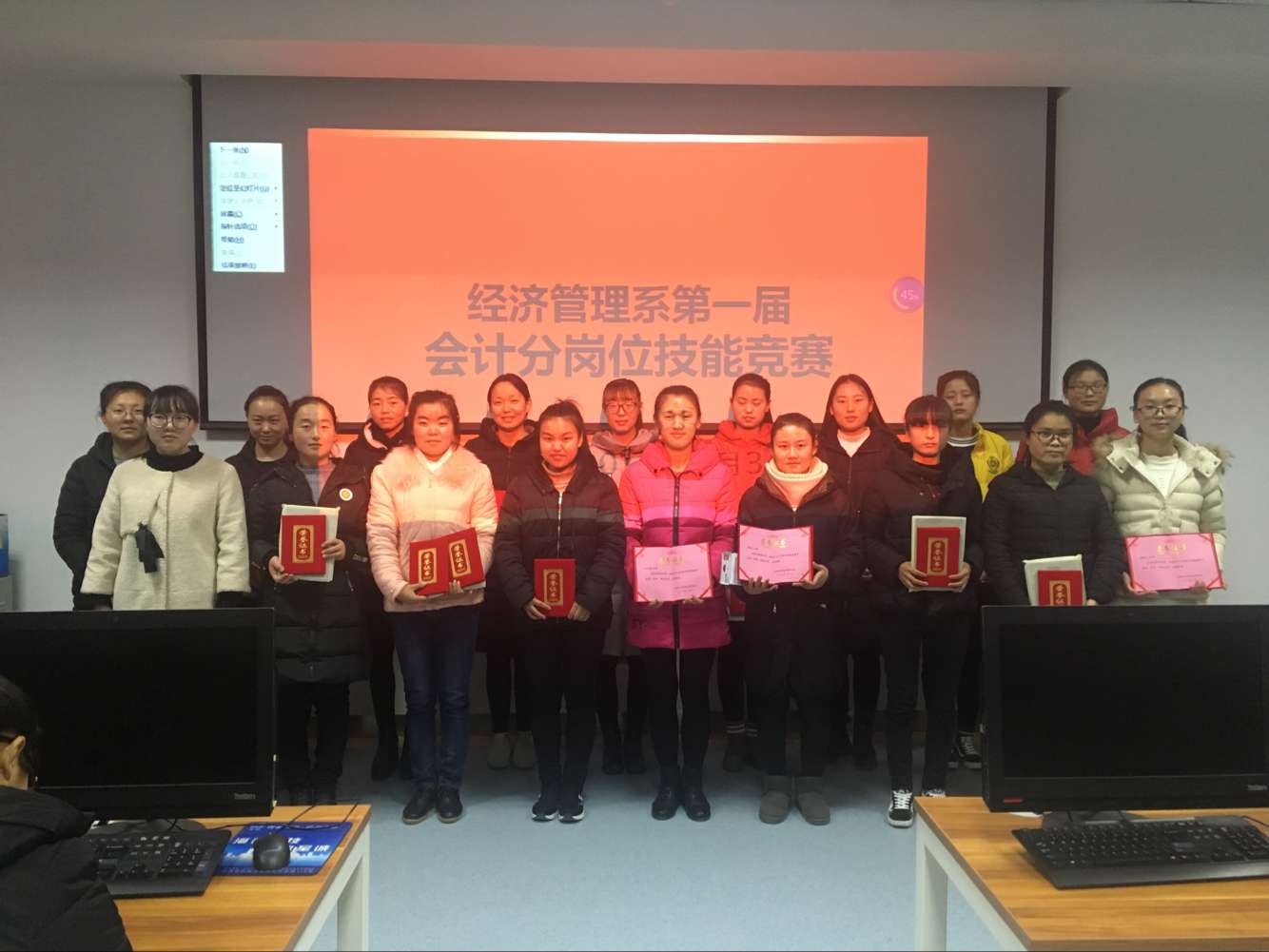 為進(jìn)一步提高會(huì)計(jì)專業(yè)學(xué)生的實(shí)踐操作技能,培養(yǎng)學(xué)生的學(xué)習(xí)興趣,調(diào)動(dòng)學(xué)習(xí)積極性,推動(dòng)我系實(shí)踐教學(xué)改革,檢驗(yàn)教學(xué)成果,經(jīng)濟(jì)管理系于2018年 1月3日舉辦了第一屆會(huì)計(jì)手工分崗位技能大賽。
