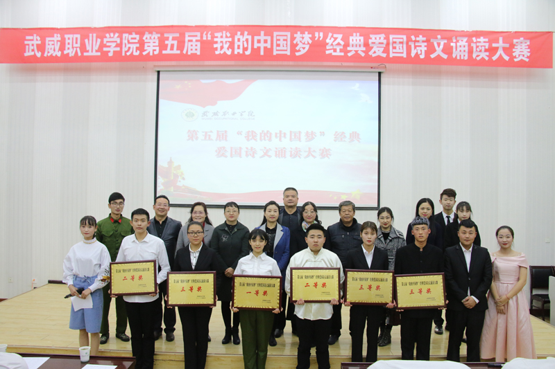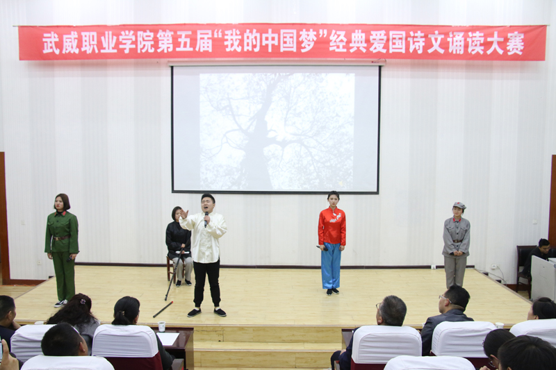 全場比賽以“我的中國夢”為切入點(diǎn),誦詩抒情、借詞言志,傳承中華民族經(jīng)典愛國詩詞和優(yōu)秀傳統(tǒng)文化,培育與踐行社會主義核心價值觀。各參賽作品融入了歌曲、場景表演等多種藝術(shù)形式,進(jìn)一步激發(fā)了同學(xué)們的愛國熱情和報國之志。經(jīng)過激烈角逐,醫(yī)學(xué)技術(shù)與信息管理系選送的作品《永遠(yuǎn)的格桑梅朵》榮獲一等獎;人文藝術(shù)教育系選送的作品《我的墓碑》、護(hù)理系選送的作品《人民萬歲》榮獲二等獎;現(xiàn)代農(nóng)業(yè)技術(shù)系選送的作品《我的爸爸》、汽車工程系選送的作品《海棠花祭》、建筑工程系選送的作品《中國軍魂》榮獲三等獎。