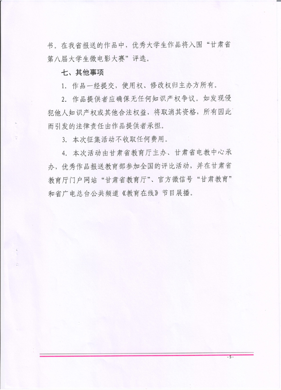 ???? 現(xiàn)將甘肅省教育廳《甘肅省教育廳關(guān)于做好征集新時代教師風(fēng)采公益廣告有關(guān)工作的通知》(甘教師函〔2018〕24號)轉(zhuǎn)發(fā)你們,請各部門、單位根據(jù)通知要求認(rèn)真組織,積極參與。將參賽作品于5月15日前報宣傳統(tǒng)戰(zhàn)部辦公室,宣傳統(tǒng)戰(zhàn)部對報送作品匯總后統(tǒng)一報送省教育廳電教中心。