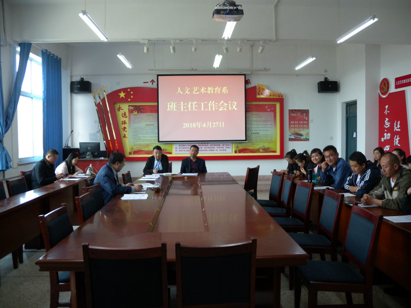 4月27日下午,人文藝術教育系召開班主任工作會議,系黨總支胡靜峰同志主持召開, 重點安排部署了安全教育工作.全體班主任和學生管理干部及其他相關人員參加會議。
