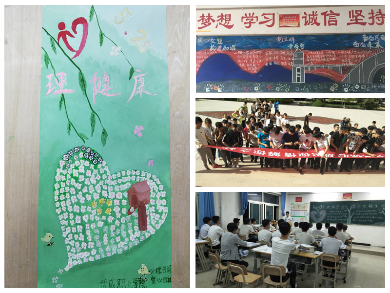 建筑工程系各班以“綠色環(huán)保,低碳生活”開展了主題班會(huì),為同學(xué)們建立全新的生活觀,養(yǎng)成良好的生活習(xí)慣。而手機(jī)對(duì)現(xiàn)在青少年的危害越來(lái)越大,嚴(yán)重影響正常生活學(xué)習(xí)。同時(shí)以“放下手機(jī),走出宿舍”為主題的黑板報(bào),教育引導(dǎo)同學(xué)們多去外面看看,更多關(guān)注外面精彩世界。各班以心理健康知識(shí)競(jìng)賽、心理健康美文朗誦、心理健康漫畫等多種形式宣傳更多心理健康知識(shí),幫助同學(xué)們更好的調(diào)解好自己的心情,爭(zhēng)做健康積極的學(xué)生。最后全系學(xué)生在博學(xué)樓前舉行以“交出你心,說出你情,解你之憂”為主題的橫幅簽名,讓同學(xué)們更好的關(guān)注自己的心理健康和心理成長(zhǎng)。