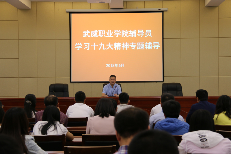 為學(xué)習(xí)貫徹十九大精神和習(xí)近平新時(shí)代中國特色社會(huì)主義思想,我院于6月4日下午在行樹樓學(xué)術(shù)報(bào)告廳組織召開學(xué)習(xí)十九大精神專題輔導(dǎo)會(huì)。各系輔導(dǎo)員、班主任、團(tuán)干部以及學(xué)工干部50余人參加輔導(dǎo)會(huì)。學(xué)生工作處處長(zhǎng)王守云做了“不忘初心、牢記使命,做新時(shí)代的‘四有’輔導(dǎo)員”專題輔導(dǎo)。