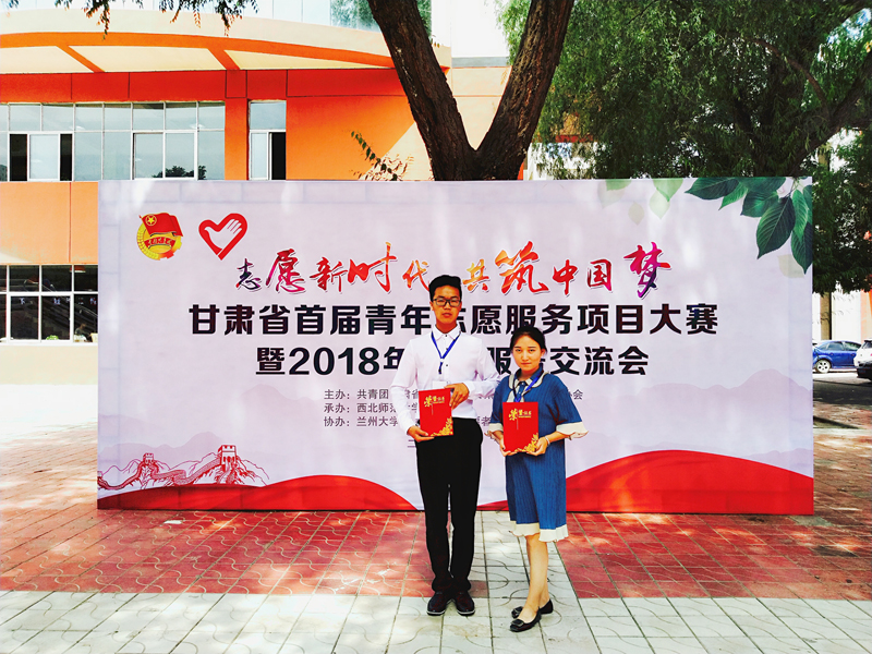 2018年6月20日—22日,甘肅省首屆青年志愿服務(wù)項(xiàng)目大賽暨2018年志愿服務(wù)交流會(huì)在蘭州西北師范大學(xué)學(xué)生發(fā)展中心舉行,學(xué)院團(tuán)委推選的兩個(gè)項(xiàng)目參加了此次大賽。共青團(tuán)甘肅省委書記趙立香、西北師范大學(xué)校長劉仲奎出席本次大賽閉幕式。
