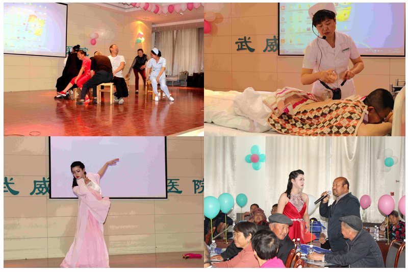 活動中穿插著文藝表演、醫(yī)患同臺小游戲和中醫(yī)特色技術演示等節(jié)目。腎病腫瘤科護士傅惠梅為大家表演了古典舞蹈《涼涼的月亮》她用優(yōu)美的舞姿表達了美好的祝愿。血液透析中心的護士們表演了《內瘺鍛煉護理操》,為大家展示了一套簡單實用的保健體操,方便大家術后鍛煉。腎病科護士們表演表演的健康韻律操《火花》,醫(yī)患同臺表演的 “搶凳子”、“拋繡球”小游戲,引得了現(xiàn)場觀眾的熱烈掌聲。腎病科李文玲等人在舞臺上演示的中醫(yī)特色治療技術《溫灸刮痧》、《拔罐療法》,把觀眾帶到了神奇的中醫(yī)世界。由腎病科醫(yī)生們集體表演的散文詩朗誦《幸福是一種內心的穩(wěn)定》,把聯(lián)誼會推向高潮……