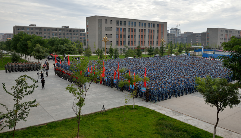 大會現(xiàn)場,田迎春向承訓(xùn)單位授予軍訓(xùn)團旗。大會在雄壯的《中國人民解放軍軍歌》聲中拉開了軍訓(xùn)序幕。