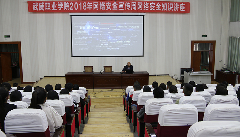 為深入學(xué)習(xí)宣傳貫徹習(xí)近平總書(shū)記在全國(guó)網(wǎng)絡(luò)安全和信息化工作會(huì)議上“深入開(kāi)展網(wǎng)絡(luò)安全知識(shí)技能宣傳普及,提高廣大人民群眾網(wǎng)絡(luò)安全意識(shí)和防護(hù)技能”的重要講話(huà)精神,按照甘肅省教育廳、武威市網(wǎng)信辦關(guān)于開(kāi)展2018年國(guó)家網(wǎng)絡(luò)安全宣傳周活動(dòng)的要求。9月18日下午,學(xué)院在正德廳舉辦了“網(wǎng)絡(luò)安全與《網(wǎng)絡(luò)安全法》”的專(zhuān)題講座,師生代表200余人參加。