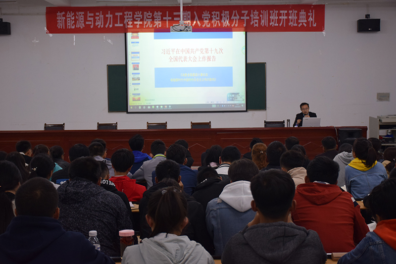 10月14日晚,新能源學(xué)院辦公室黨支部書記任陶在明德樓001教室作學(xué)習(xí)黨的十九大精神主題報(bào)告,98名入黨積極分子和45名發(fā)展對象認(rèn)真聆聽了此次報(bào)告。