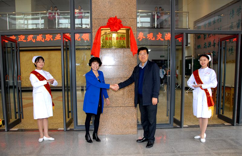 10月21日在天水市衛(wèi)生學校,潘玉華和天水衛(wèi)校校長毛如君為“武威職業(yè)學院優(yōu)質(zhì)生源基地”揭牌,天水衛(wèi)校校領導班子成員和相關處室負責人參加了揭牌儀式。之后毛如君介紹了學校發(fā)展情況和校園整體規(guī)劃,并陪同潘玉華一行參觀了學校的教學樓、實驗實訓樓、學生公寓、學生食堂等教學設施和生活環(huán)境。