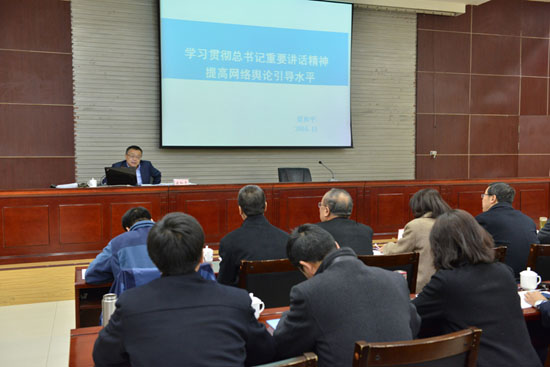 梁和平就貫徹落實習(xí)近平總書記關(guān)于黨的新聞輿論工作的重要論述精神作了解讀。他深入分析了我國當(dāng)前面臨的網(wǎng)絡(luò)輿情形勢,全面闡述了網(wǎng)絡(luò)輿情的主要特點(diǎn)、演變途徑、價值判斷標(biāo)準(zhǔn)、研判基本要點(diǎn)和應(yīng)對原則后,結(jié)合大量案例,就輿論引導(dǎo)技巧作了深入講解。