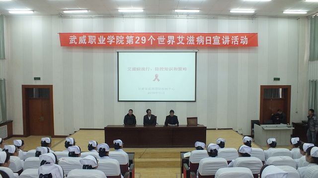 12月1日被世界衛(wèi)生組織確立為“世界艾滋病日”。在第29個(gè)“世界艾滋病日”來(lái)臨之際,學(xué)院聯(lián)合武威市衛(wèi)計(jì)委、武威市疾控中心等多家單位,舉辦了主題為“攜手抗艾、重在預(yù)防”的系列宣傳活動(dòng),通過(guò)艾滋病知識(shí)講座、主題演講比賽、萬(wàn)人簽名儀式等活動(dòng),宣傳普及了艾滋病預(yù)防知識(shí),提高了學(xué)院師生對(duì)艾滋病防治工作的認(rèn)識(shí),為營(yíng)造關(guān)心關(guān)愛(ài)艾滋病病人和感染者以及防治艾滋病創(chuàng)造了良好的社會(huì)氛圍。