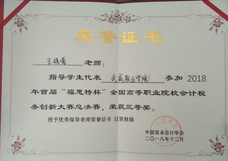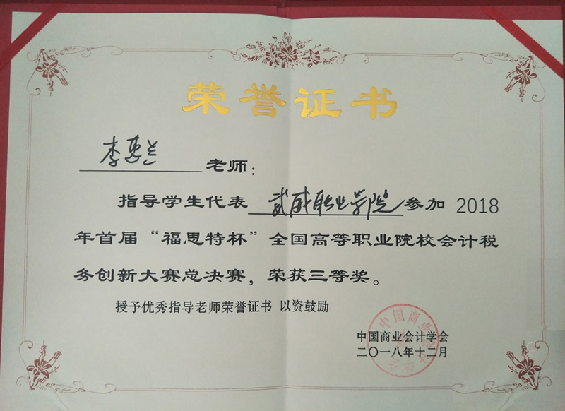 本次比賽得到學(xué)院領(lǐng)導(dǎo)、系領(lǐng)導(dǎo)的高度重視與大力支持。經(jīng)濟管理系專門成立了輔導(dǎo)小組,嚴格按照國賽要求進行實戰(zhàn)訓(xùn)練。近年來,經(jīng)濟管理系參加各級各類會計技能競賽,適時修訂會計人才培養(yǎng)方案,提升學(xué)生動手實踐能力,培養(yǎng)學(xué)生的職業(yè)核心和專業(yè)崗位能力。做到技能競賽與教學(xué)改革、人才培養(yǎng)相輔相成、相得益彰,使學(xué)生團隊合作能力、創(chuàng)新思維能力、職業(yè)能力不斷加強,實現(xiàn)了“以賽促教、以賽促學(xué)、以賽促改”的預(yù)期效果。經(jīng)濟管理系將以此為契機,不斷提高人才培養(yǎng)質(zhì)量,為學(xué)院優(yōu)質(zhì)院校建設(shè)增磚添瓦。