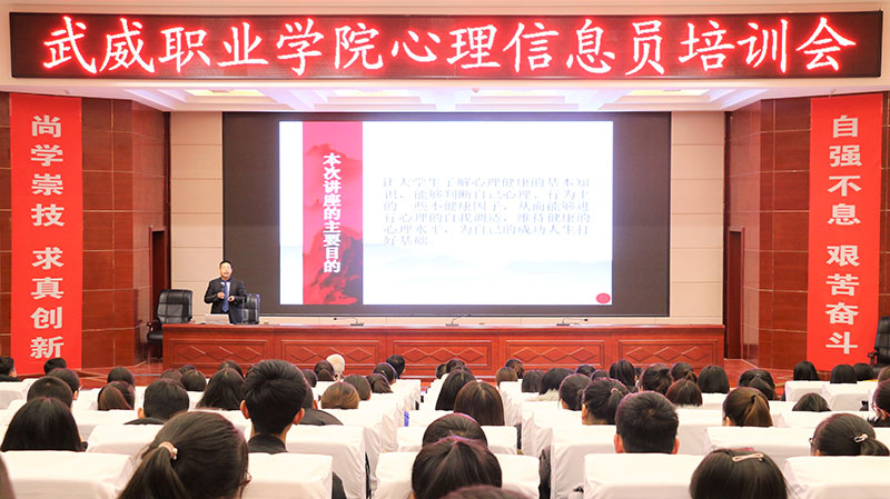 12月4日晚上,學(xué)生工作處聯(lián)合武威市“三社聯(lián)動”惠政社區(qū)試點(diǎn)項(xiàng)目在學(xué)院菁英廳舉辦了心理健康專題講座暨心理信息員培訓(xùn)。此次講座邀請武威市心理咨詢師協(xié)會會長何飛老師主講,學(xué)院各系輔導(dǎo)員、2017級、2018級班級心理信息員、心翼心理社團(tuán)會員等220多人聆聽了講座。學(xué)生工作處處長王守云主持活動。