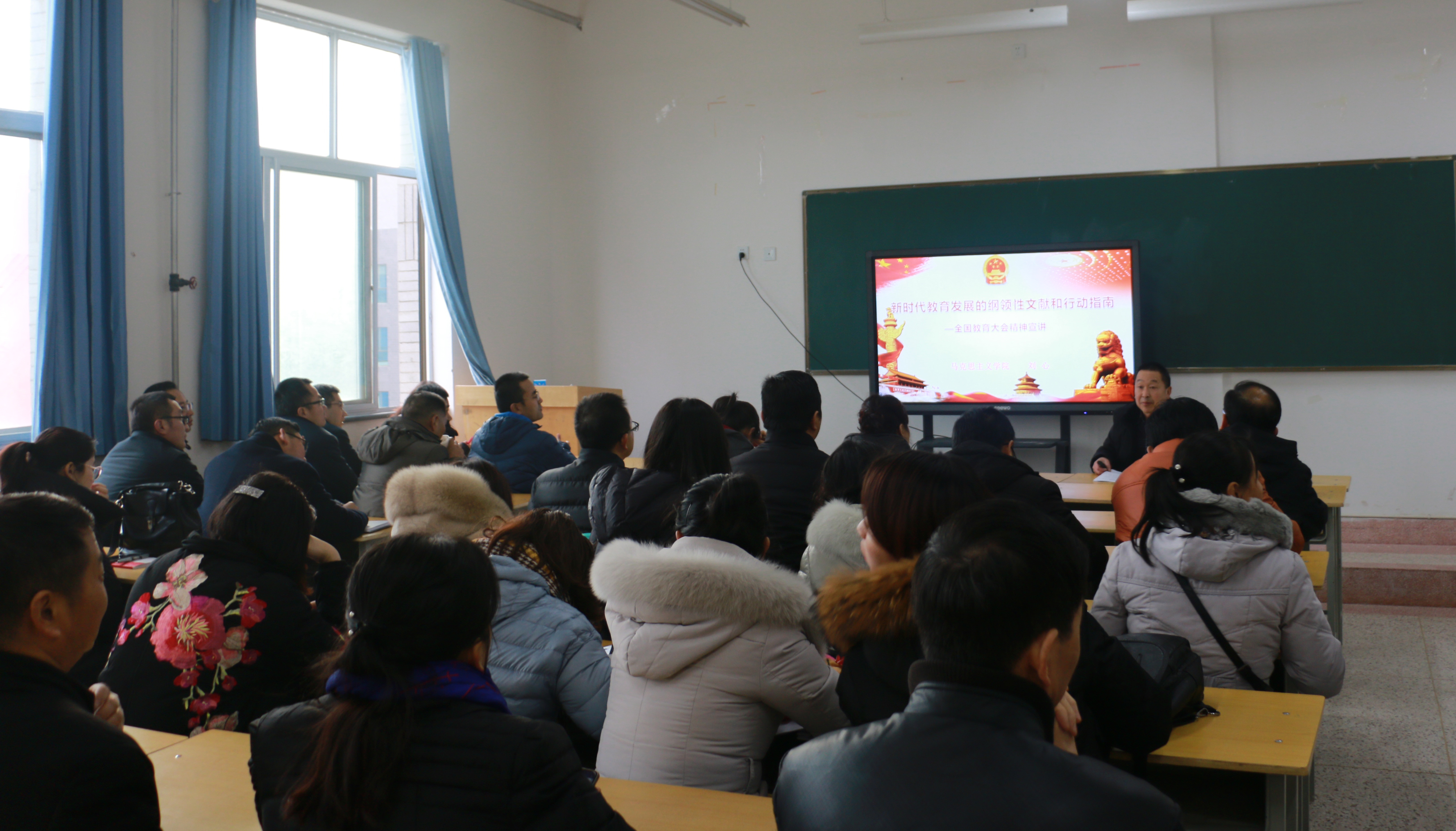 12月21日下午,能源工程系與經(jīng)濟(jì)管理系、電子信息工程系在行樹(shù)樓504教室聯(lián)合開(kāi)展“全國(guó)教育大會(huì)精神”宣講活動(dòng),宣講會(huì)由人文藝術(shù)教育系思政教研室主任劉心主講,能源工程系與經(jīng)濟(jì)管理系、電子信息工程系60多名教師參加了本次活動(dòng)。