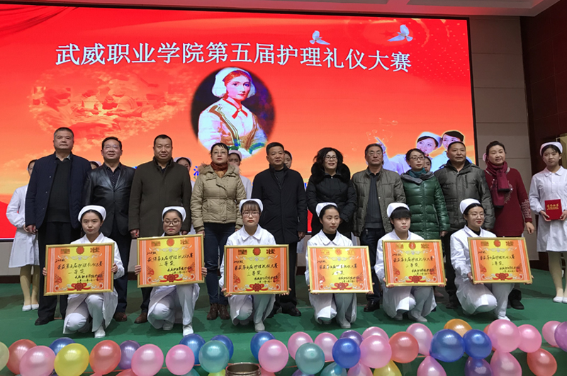 為弘揚(yáng)南丁格爾精神,強(qiáng)化護(hù)生禮儀修養(yǎng),推進(jìn)護(hù)理專業(yè)深層次內(nèi)涵式發(fā)展,助推我市文明城市建設(shè),12月21日,在大學(xué)生活動中心菁英廳舉辦了“武威職業(yè)學(xué)院第五屆護(hù)理禮儀大賽”。學(xué)院黨委書記、院長趙明、學(xué)院副院長田迎春、院工會主席金玉龍、教務(wù)處處長仲生仁、學(xué)生工作處處長王守云、招生就業(yè)處處長蔡柱山、科研處處長張玉琴、圖書館館長黃雪梅、電子信息黨總支書記袁青年應(yīng)邀出席本次活動,護(hù)理系300多名師生觀看了本次比賽。