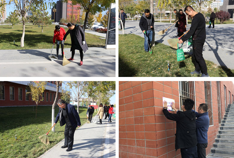 支部全體黨員在大學(xué)生活動(dòng)中心門口、風(fēng)雨操場(chǎng)及校園馬路清掃落葉和垃圾,并對(duì)沿線衛(wèi)生死角進(jìn)行清理,對(duì)不文明行為進(jìn)行即時(shí)勸導(dǎo)。在教學(xué)樓、活動(dòng)中心、公寓樓、食堂等建筑物的醒目位置張貼20余張“創(chuàng)建文明校園”、“禁止吸煙”等標(biāo)志。通過開展“創(chuàng)建文明校園”活動(dòng),進(jìn)一步提升我院“創(chuàng)建文明城市”迎檢和“創(chuàng)建文明校園”活動(dòng)效果。