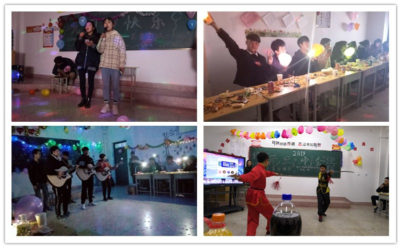 18級(jí)實(shí)驗(yàn)一班聯(lián)歡晚會(huì)在開(kāi)場(chǎng)歌舞《禮儀之邦》中正式拉開(kāi)了帷幕,隨后李陽(yáng)同學(xué)帶來(lái)一首獨(dú)唱《生僻字》,讓現(xiàn)場(chǎng)所有人感受到中國(guó)文化的博大精深;馬武選,李海強(qiáng)的詩(shī)詞朗誦《沁園春雪》雄渾而深情,盡顯作者前無(wú)古人的巨大胸懷與氣魄。18光熱技術(shù)及應(yīng)用大專班同學(xué)王永鵬、李學(xué)棟帶來(lái)的歌曲《追夢(mèng)赤子心》唱出了每個(gè)正在奔赴理想路上人的心聲,勵(lì)志的同時(shí)使人瞬間正能量百分百;任海峰同學(xué)帶來(lái)武術(shù)《長(zhǎng)拳》一招一式武威有力,把中華武術(shù)的魅力體現(xiàn)得淋漓盡致。18材料農(nóng)能合班王營(yíng)、盧澤元帶來(lái)吉他彈唱《我們的時(shí)光》傳達(dá)出同學(xué)們對(duì)當(dāng)下美好校園時(shí)光的珍惜。18級(jí)新能源裝備1班223宿舍和220宿舍分別帶來(lái)合唱《到遠(yuǎn)方》和《我們的明天》,句句歌詞唱響了對(duì)2018年的懷念和對(duì)2019年的期待。18光伏班張佳甜、李曉和胡海飛帶來(lái)歌曲《紫色煙花》,在青春的交響中把純真與活力灑向現(xiàn)場(chǎng)。18級(jí)新能源裝備2班全體學(xué)生合唱的《明天會(huì)更好》表達(dá)了全體師生共建文明和諧校園的美好愿景。