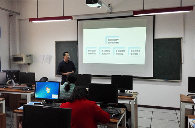11月22日下午,電子信息工程系在尚德樓2號機(jī)房舉行赴美研修教師專題匯報會,系全體專兼職教師參加會議,分享研修成果。
