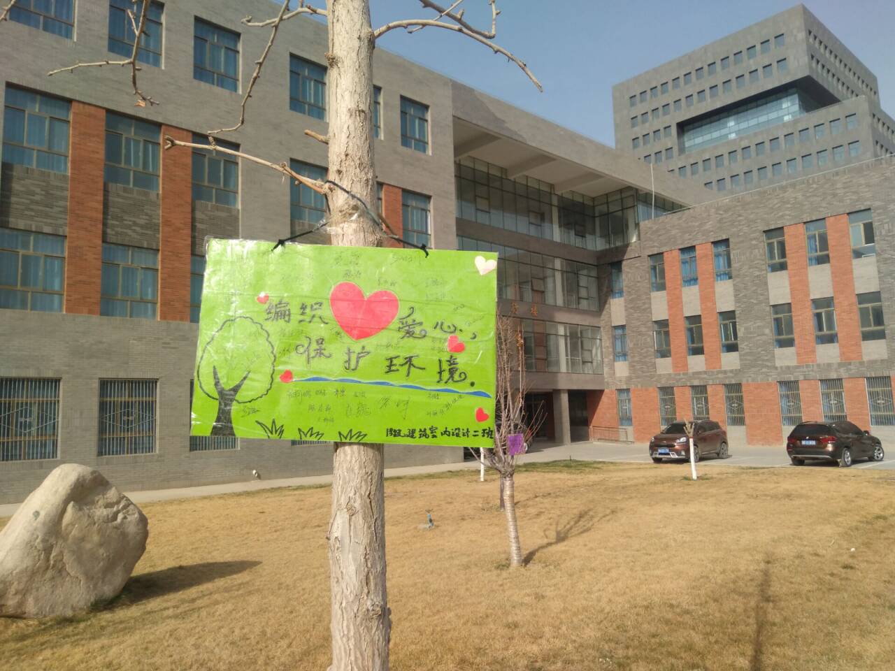 ? ?為助力創(chuàng)建文明城市,構(gòu)建文明綠色環(huán)保校園。4月2日建筑工程系學(xué)生分會聯(lián)合各班級在環(huán)境區(qū)域設(shè)立愛護(hù)校園草坪的標(biāo)語牌活動。 ? ? ?