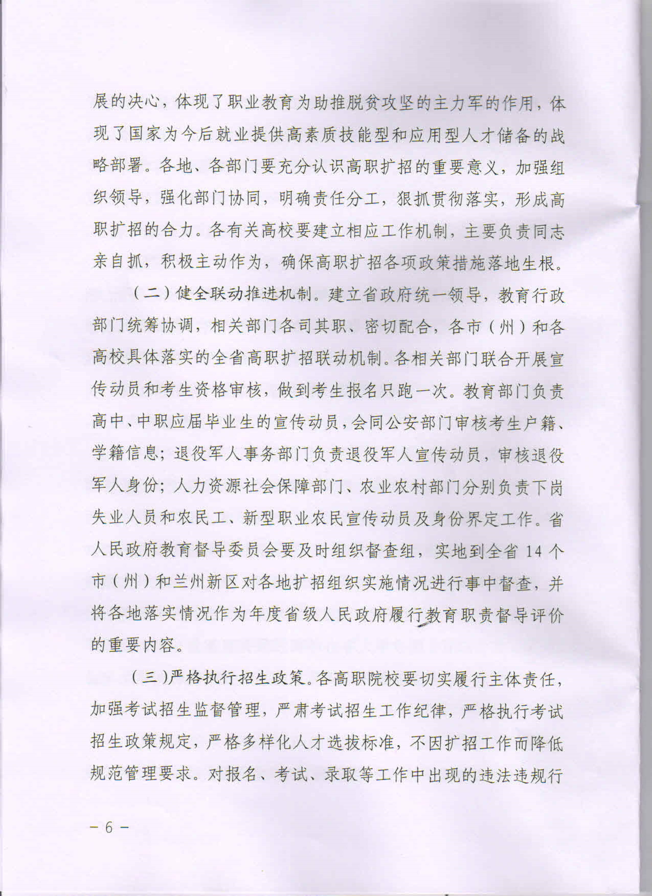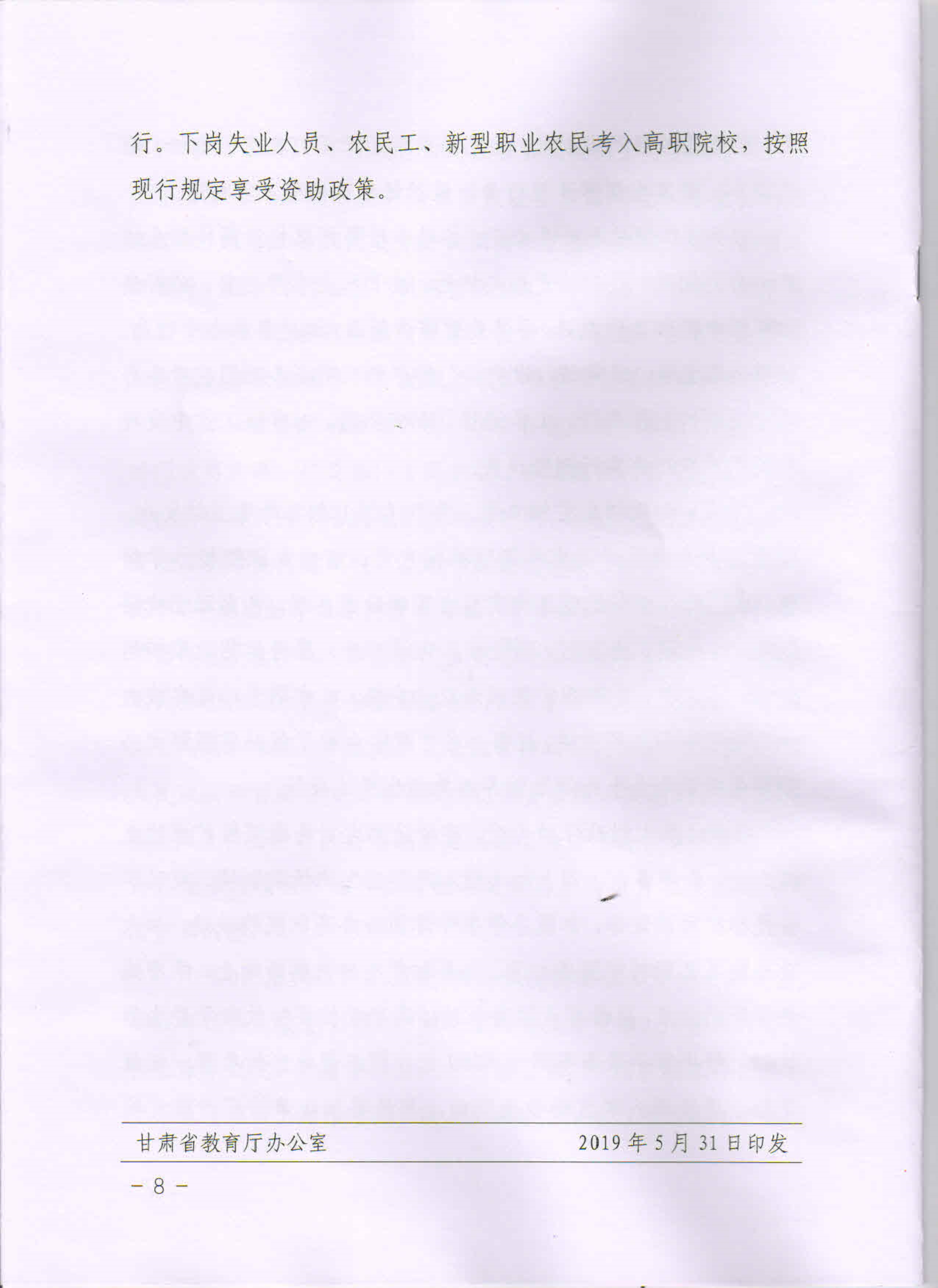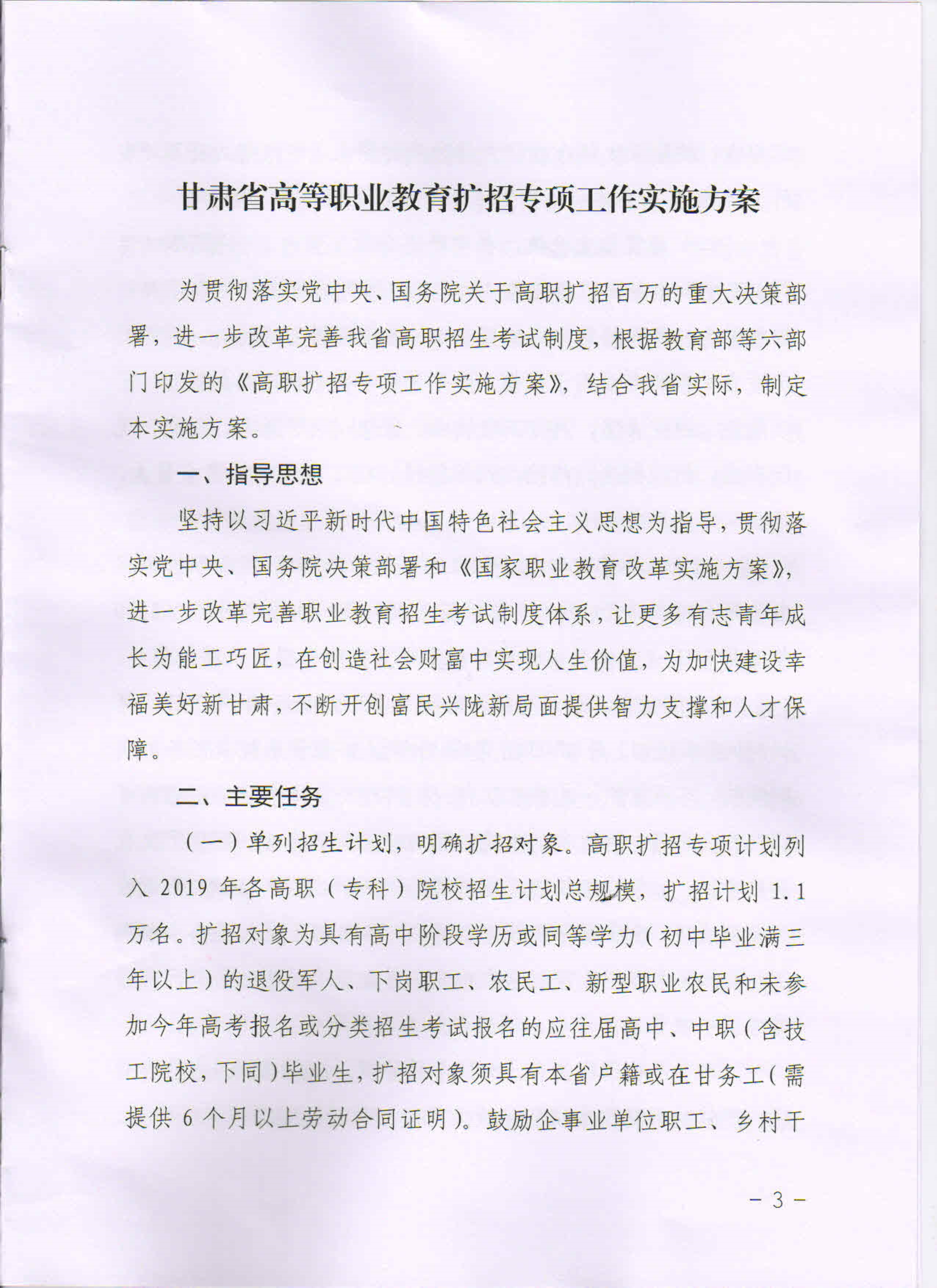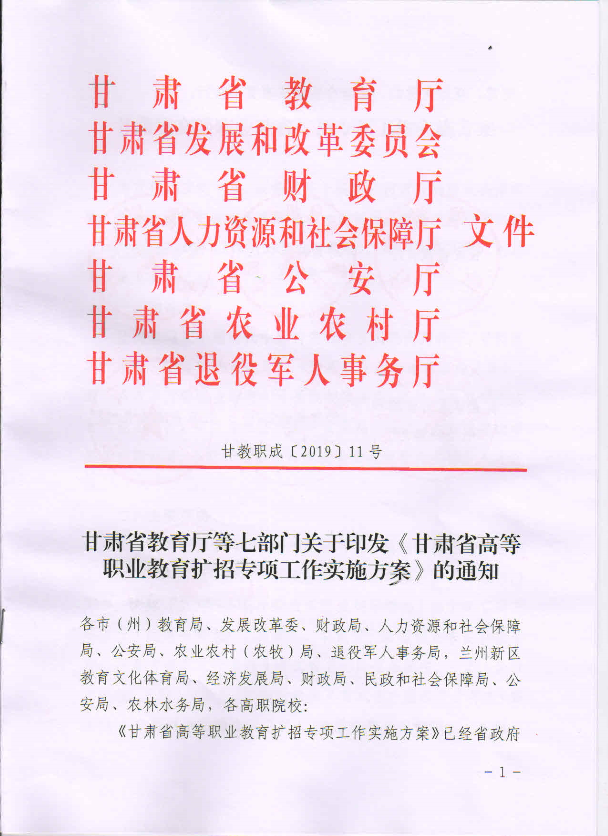 19年關于做好2019年甘肅省高等職業(yè)教育擴招專項考試招生工作的通知
