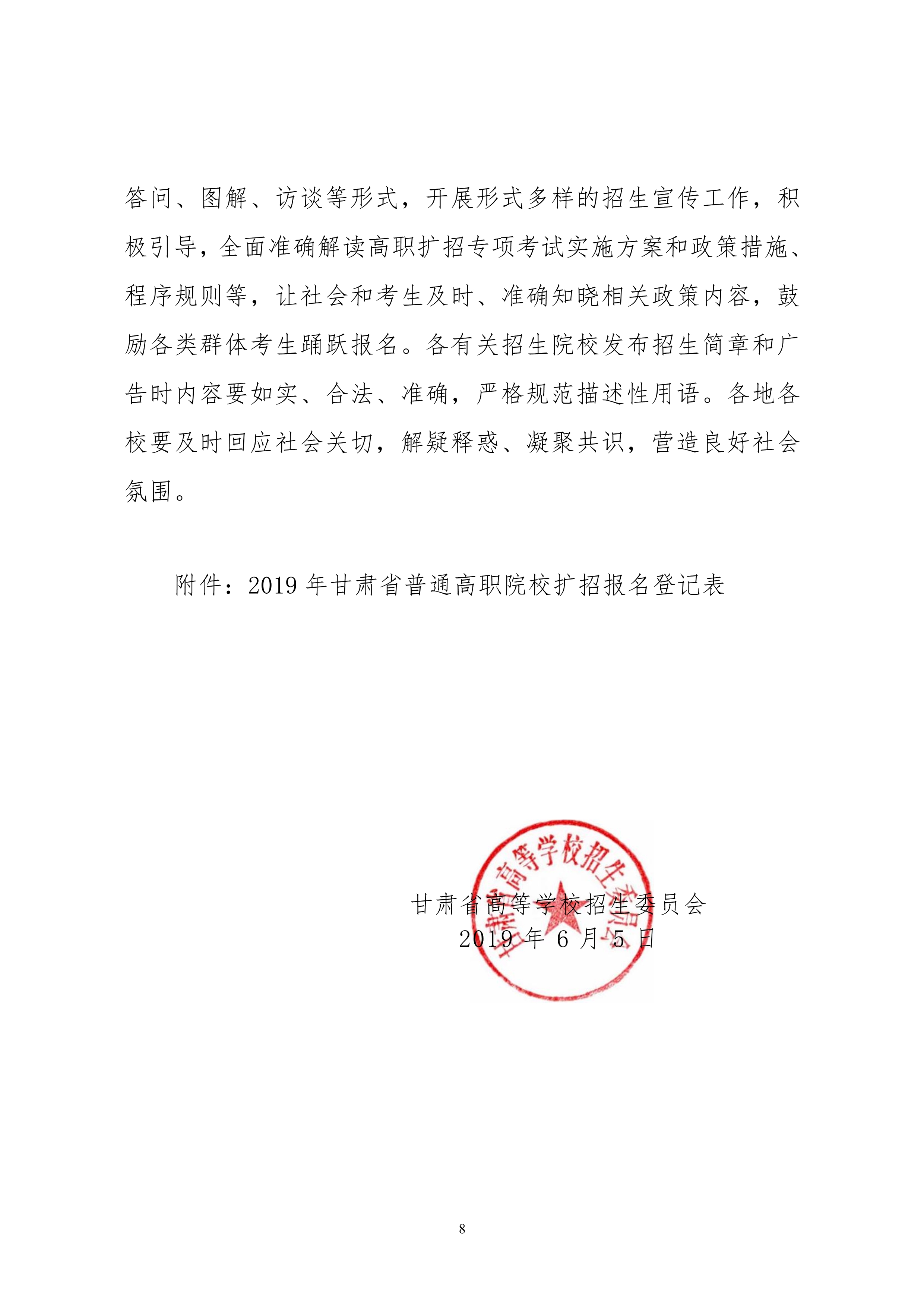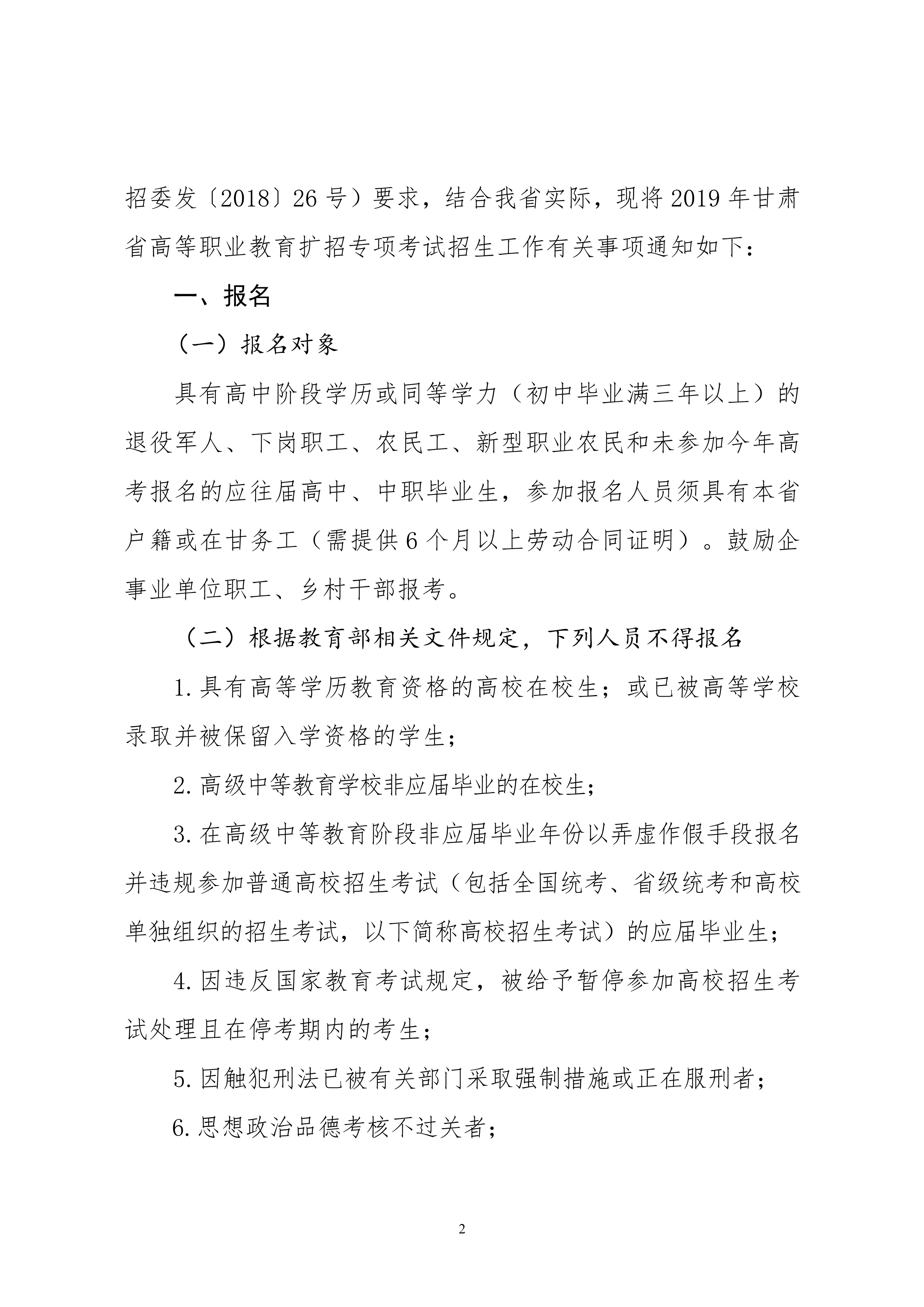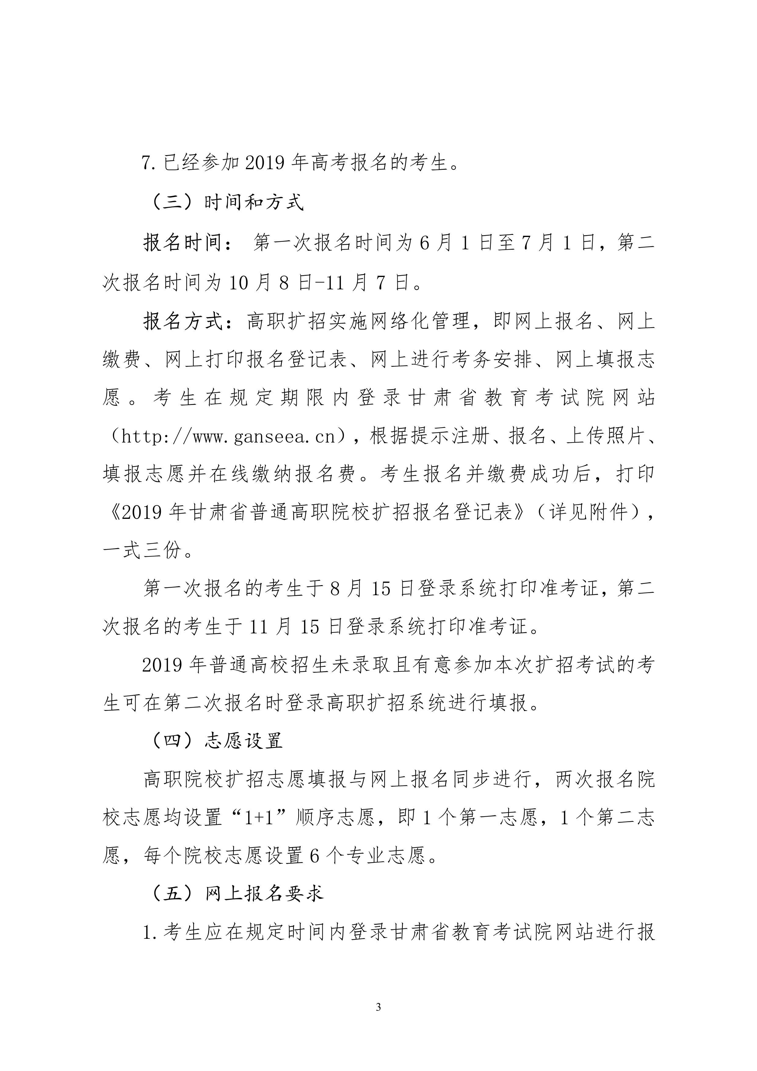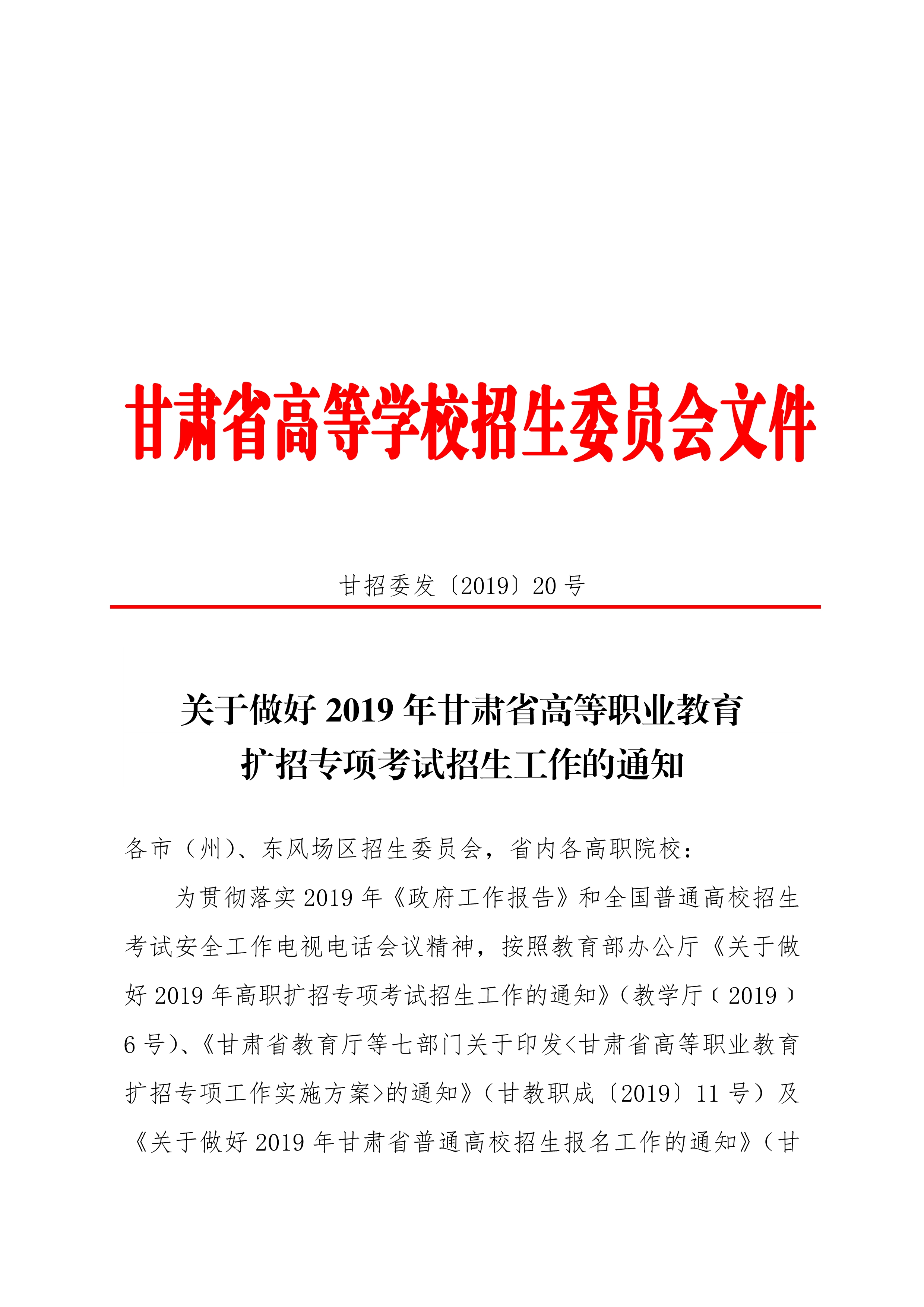 19年關于做好2019年甘肅省高等職業(yè)教育擴招專項考試招生工作的通知
