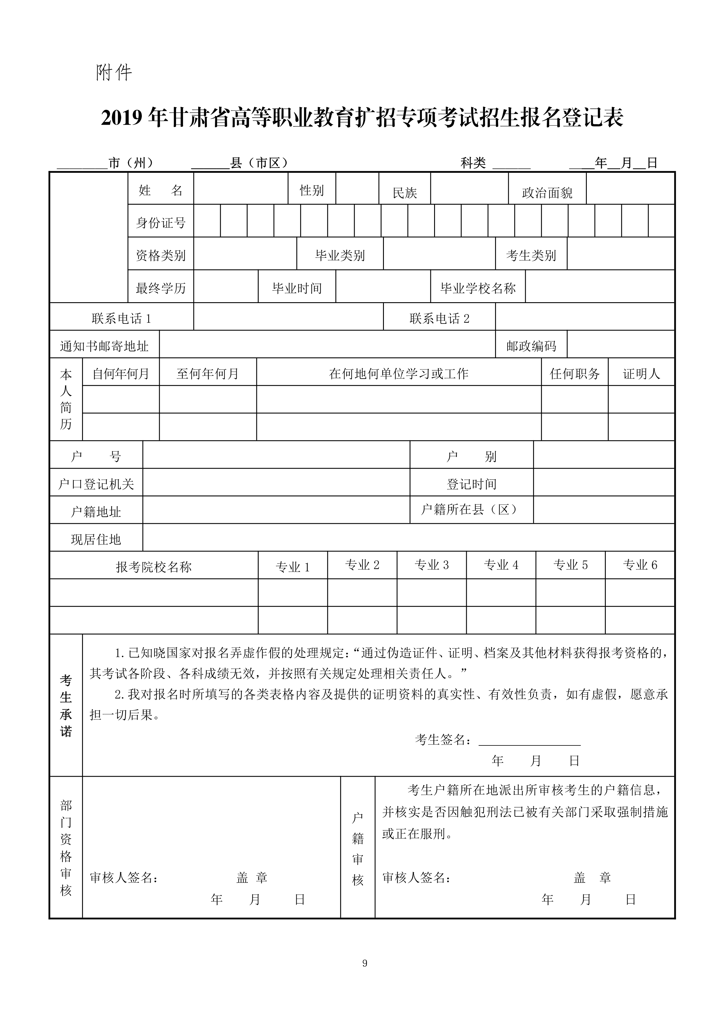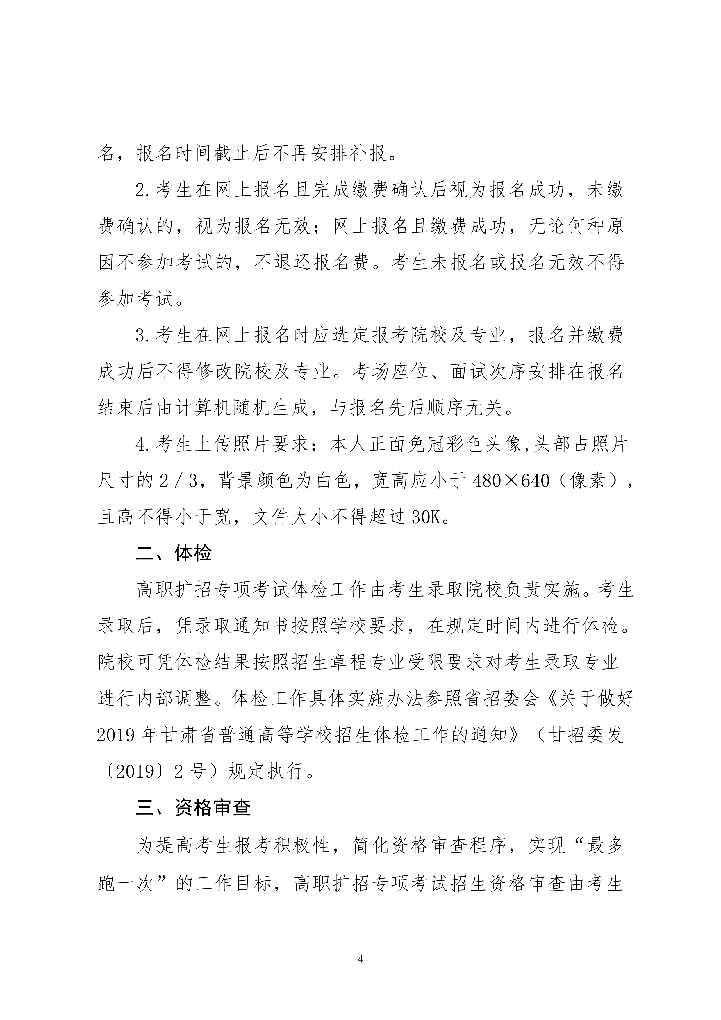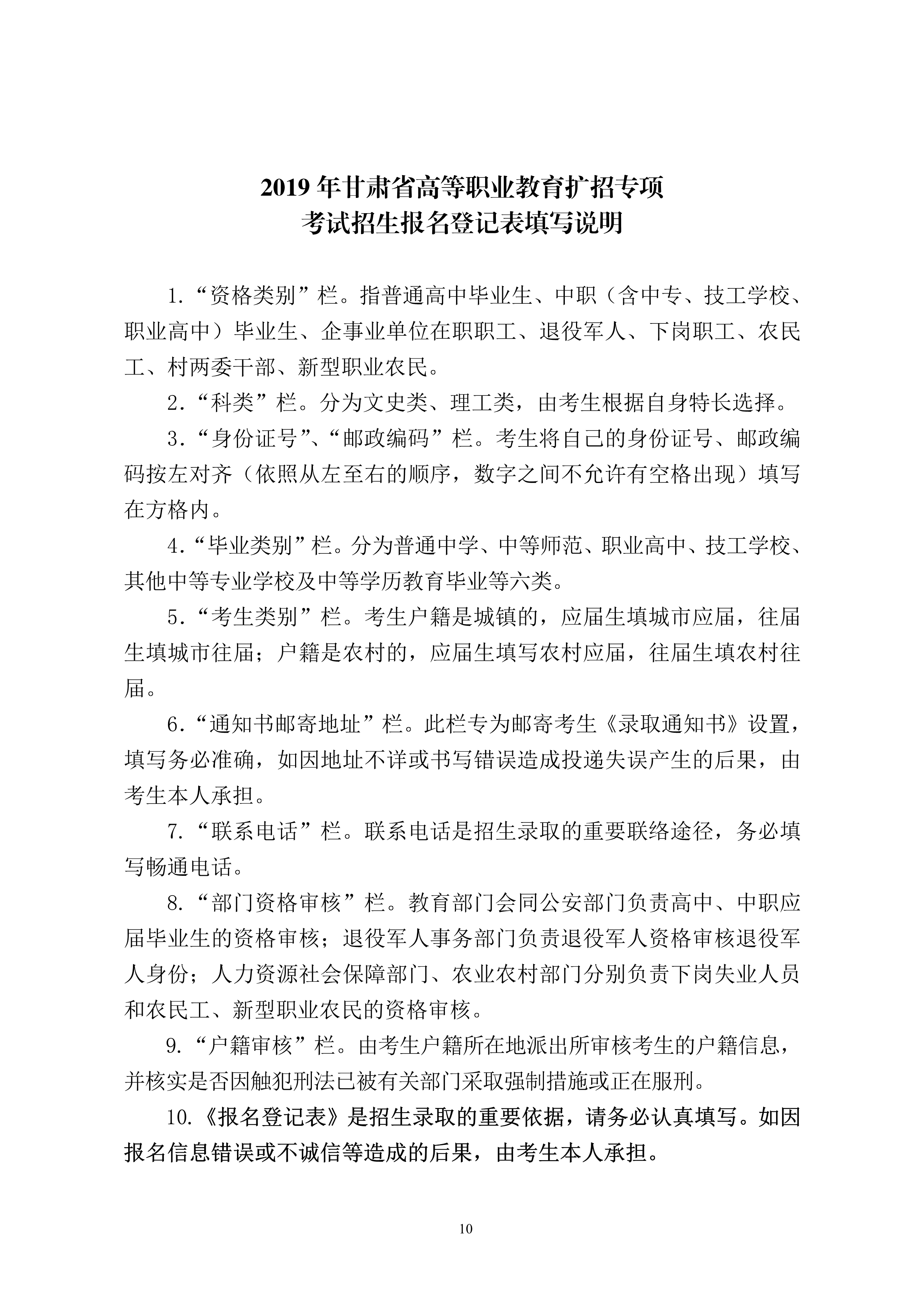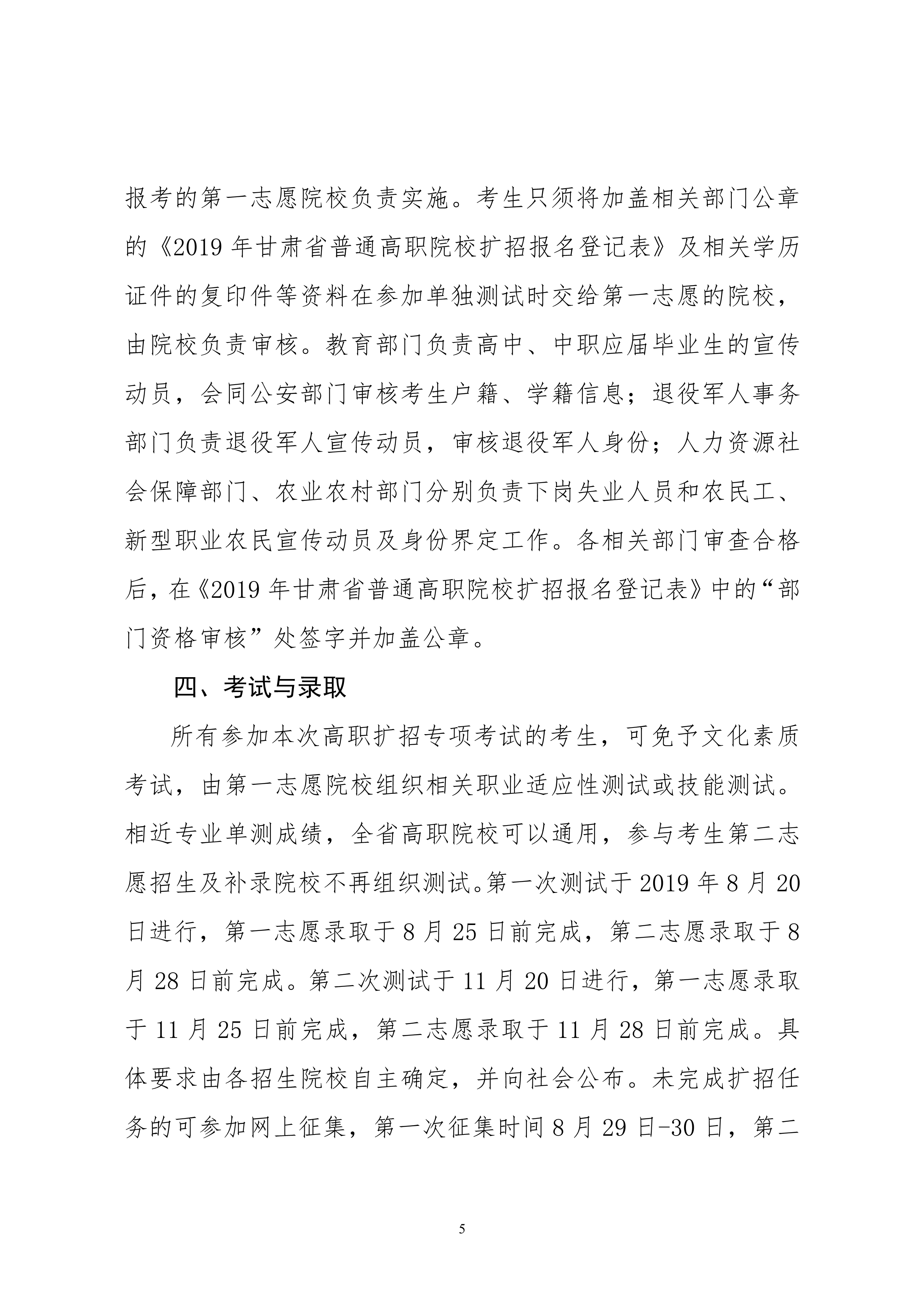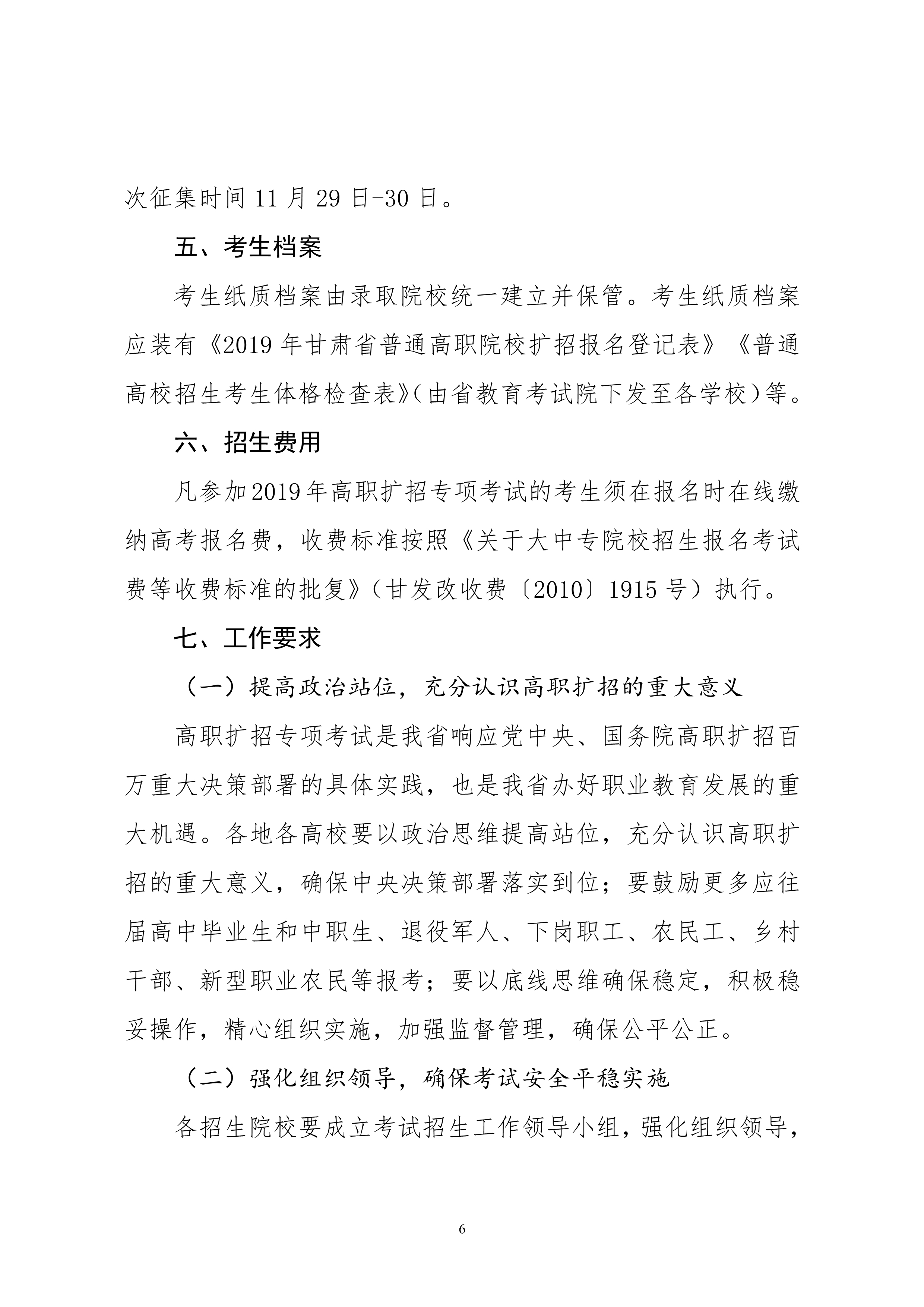 19年關于做好2019年甘肅省高等職業(yè)教育擴招專項考試招生工作的通知