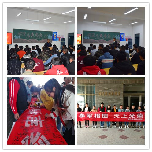 首先蔡海老師向同學(xué)們細致地講解了今年的征兵條件、報名方法及相關(guān)優(yōu)待政策,深入宣傳依法服兵役的積極意義,鼓勵適齡青年積極報名應(yīng)征,報效祖國。同時邀請2017級設(shè)施農(nóng)業(yè)裝備大專班趙文文同學(xué)做了個人事跡匯報。該生曾在陸軍某部服役,現(xiàn)光榮退伍,回校就讀。交流中,他鼓勵同學(xué)們要敢于有夢、敢于追夢、敢于圓夢,讓青春在軍營的歷練中、在為祖國的奉獻中閃光。他還生動的講述了部隊的生活和訓(xùn)練情況,這段經(jīng)歷使他收獲了遠大的理想信念,培養(yǎng)了良好的行為習(xí)慣,練就了強健的身體,這些將會讓他終身受益?;顒?/font>最后進行了“參軍報國,無上光榮”主題簽名儀式。