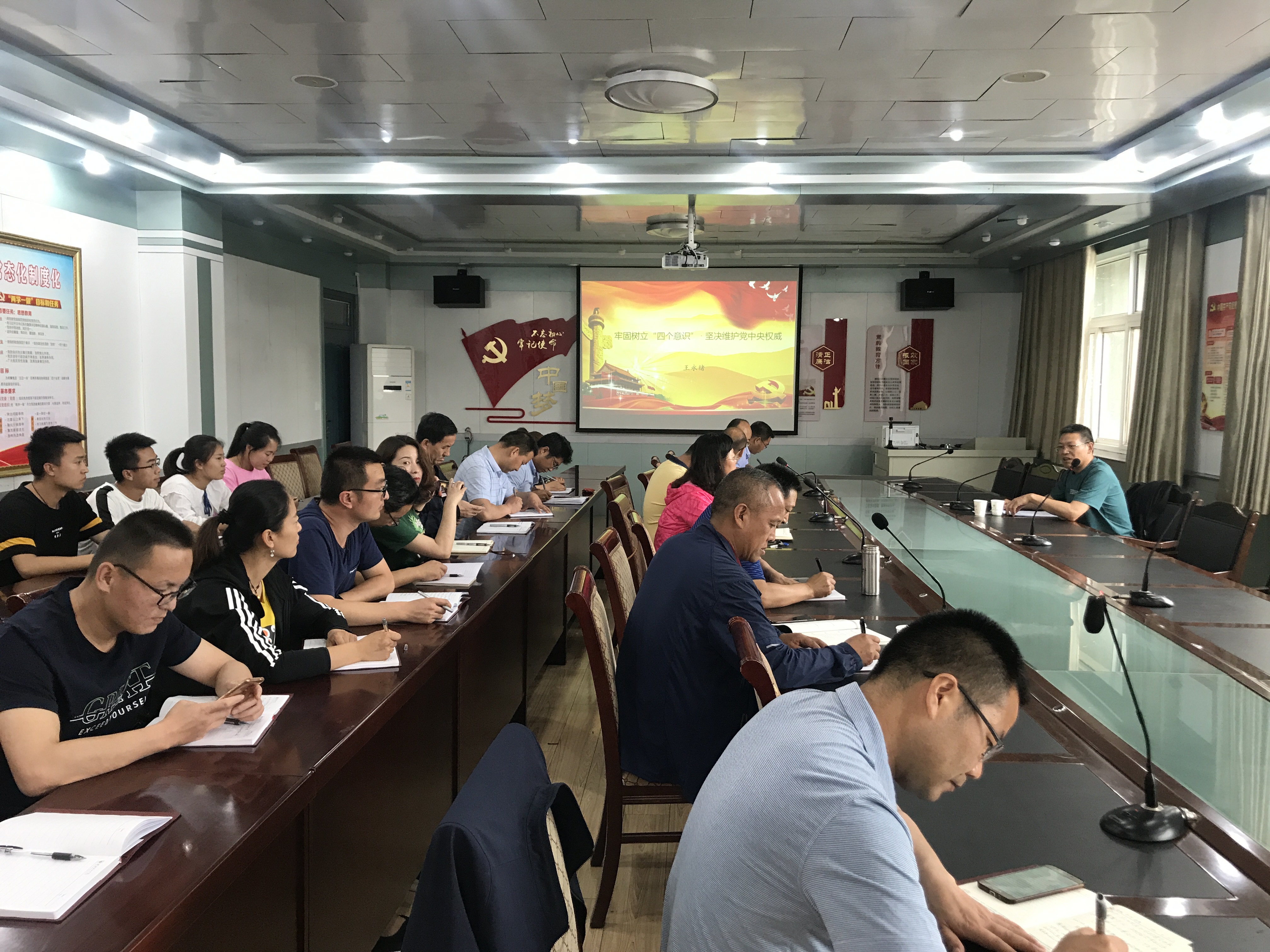 王永緒同志從三個方面深刻講解了“四個意識”,一是充分認識牢固樹立“四個意識”的重大意義;二是深刻理解“四個意識”的科學內涵;三是持續(xù)加強“四個意識”學習,爭做合格共產黨員。用身邊感動的人和事,通過樸實的講授,使在座的黨員和入黨積極分子深受教育,全體黨員深刻認識到牢固樹立“四個意識”,是黨中央對每一位黨員在新時期發(fā)展中提出的更高要求,我們每一位黨員,要真正把“四個意識”落到實處,不斷查找解決工作中存在的突出問題,及時校準思想之標、調正行為之舵、繃緊作風之弦,用實際行動維護中央權威,為中國特色社會主義事業(yè)盡一份黨員應盡的職責。