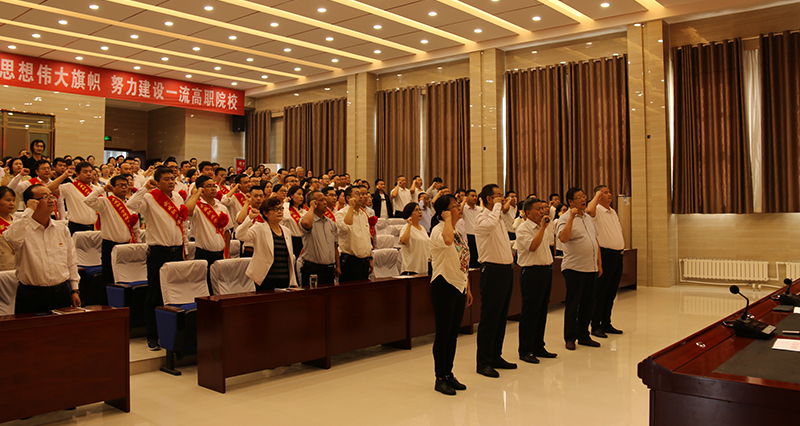 以“慶祝新中國(guó)七十華誕 弘揚(yáng)新時(shí)代尊師風(fēng)尚”為主題的教師節(jié)慶祝大會(huì)在莊嚴(yán)的《國(guó)歌》聲中拉開帷幕。學(xué)院黨委書記、院長(zhǎng)趙明帶領(lǐng)全體教師重溫了教師誓詞,鏗鏘有力的誓詞、莊嚴(yán)的承諾,進(jìn)一步堅(jiān)定了廣大教師立德樹人的理想和信念。黨委副書記翟存祥領(lǐng)學(xué)了高校教師行為準(zhǔn)則,對(duì)高校教師行為提出了要求。