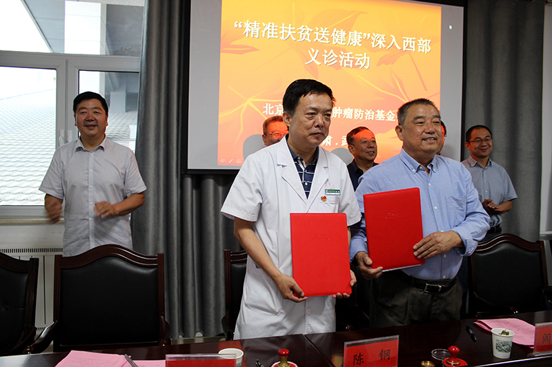 陳鋼與閻桐共同簽訂捐贈10萬元腫瘤防治基金協(xié)議。該基金用于資助武威貧困腫瘤患者康復治療使用。