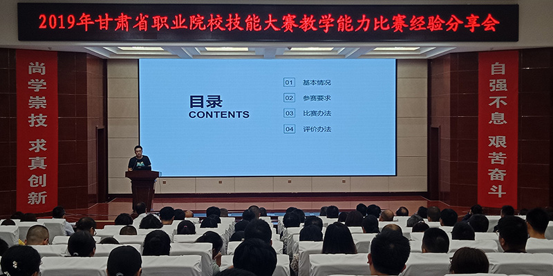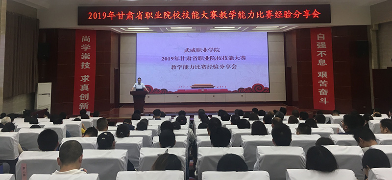 2019年全省職業(yè)院校技能大賽教學(xué)能力比賽于7月1日至7月5日在甘肅省交通職業(yè)技術(shù)學(xué)院舉行,學(xué)院6件作品23名教師參加比賽,并取得了優(yōu)異的成績。7月8日學(xué)院舉辦了比賽經(jīng)驗分享會,各相關(guān)部門、單位負責人、中青年骨干教師、兼職教師、教務(wù)處和項目辦相關(guān)人員共210多名教師參加。