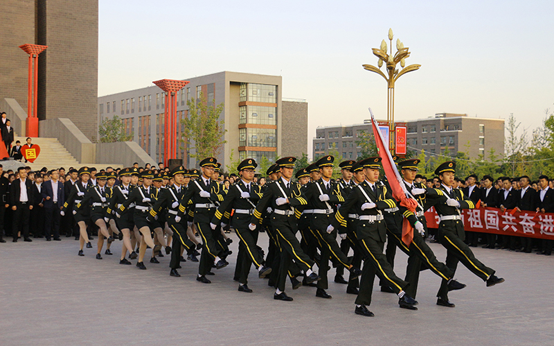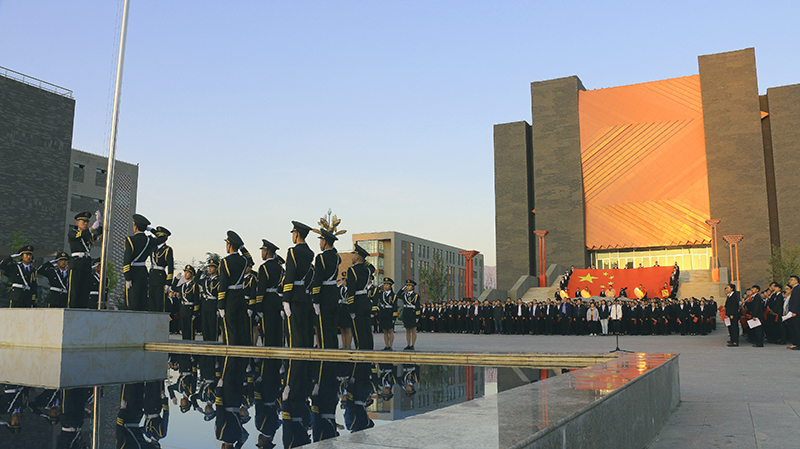 首先,舉行升國旗儀式。英姿颯爽的國旗護衛(wèi)隊踏著矯健的步伐護送國旗抵達升旗臺,鮮艷的五星紅旗在雄壯的國歌聲中冉冉升起,全場師生齊唱中華人民共和國國歌,飄揚的國旗、嘹亮的國歌,激蕩起每個人強烈的愛國熱情。升旗儀式結(jié)束后,全體師生揮動手中的五星紅旗齊唱《歌唱祖國》,用歌聲共同祝福偉大的祖國繁榮富強。院團委馬琪老師帶領(lǐng)全體團員面向鮮紅的團旗重溫入團誓詞,激發(fā)共青團員的光榮感和使命感。