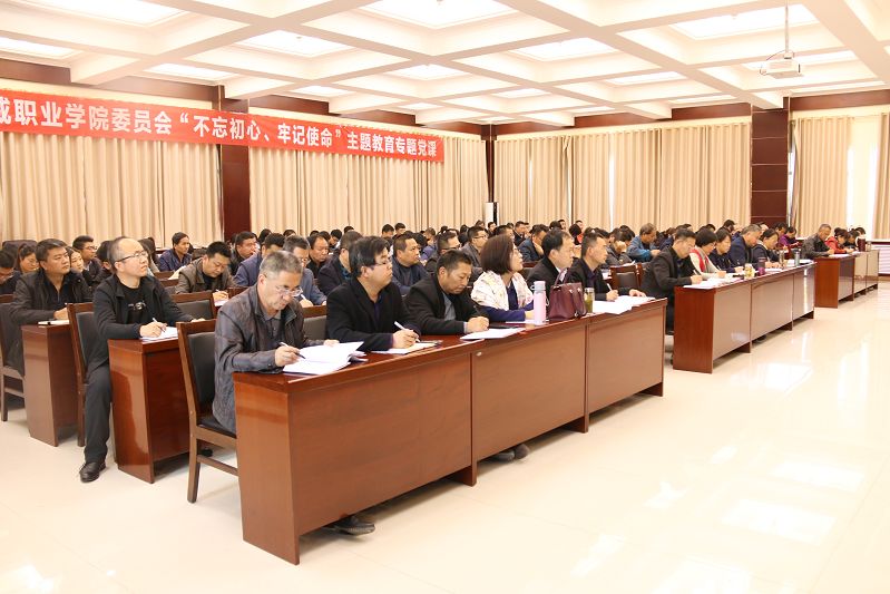 趙明最后強調,學院將緊緊圍繞為黨育人、為國育才,突出黨的政治建設,引導廣大黨員干部和教職員工,緊扣立德樹人的根本任務,按照中央和省委要求,把學習教育、調查研究、檢視問題、整改落實貫穿主題教育始終。站在新的歷史起點上,讓我們緊密團結在以習近平同志為核心的黨中央周圍,高舉習近平新時代中國特色社會主義思想偉大旗幟,不忘初心、牢記使命、繼續(xù)前進,以黨建為統(tǒng)領,緊緊圍繞高等職業(yè)教育發(fā)展目標要求,強化責任擔當,以實際行動主動承擔起學院事業(yè)發(fā)展的光榮使命,全身心投入到爭創(chuàng)中國特色高水平高職院校的任務中來,以勇于攻艱克難的決心和勇氣,強化奮進擔當的精神面貌,主動破解制約學院事業(yè)發(fā)展的瓶頸問題,敢于碰硬、擔當作為,奮力開創(chuàng)學院各項事業(yè)發(fā)展新局面!