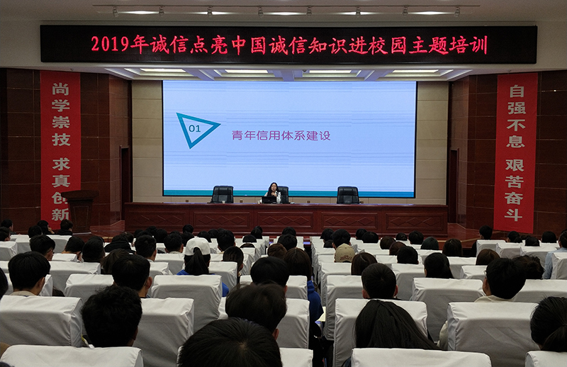 為進(jìn)一步拓寬誠信知識宣傳的深度和廣度,提升我院青年學(xué)生的誠信意識,增強(qiáng)同學(xué)們信用理念和防范重大風(fēng)險(xiǎn)的意識, 3月30日上午,2019年“誠信點(diǎn)亮中國”誠信知識進(jìn)校園活動(dòng)在菁英廳舉辦,團(tuán)省委青年信用體系建設(shè)領(lǐng)導(dǎo)小組辦公室主任高振葉作了《青年信用體系建設(shè)與志愿中國》主題講座,團(tuán)市委少工委副主任許娜出席活動(dòng),院團(tuán)委教師和220學(xué)生代表參加了培訓(xùn)。