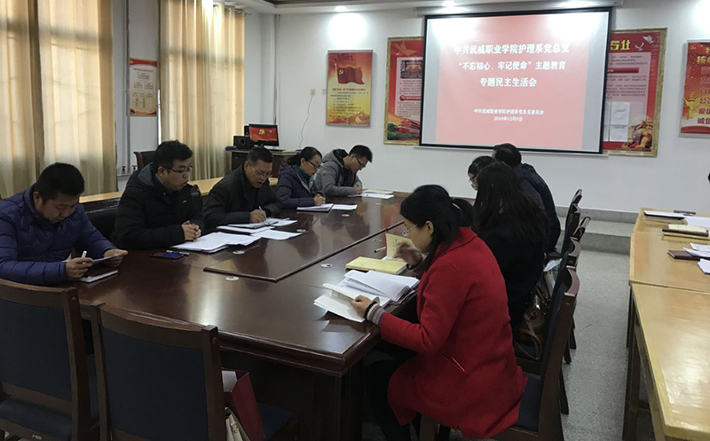按照學(xué)院黨委“不忘初心、牢記使命”主題教育領(lǐng)導(dǎo)小組工作部署,12月9日上午,護理系黨總支在明遠(yuǎn)樓103會議室召開“不忘初心、牢記使命”專題民主生活會,會議由系黨總支書記張建輝同志主持。學(xué)院黨委委員、副院長王永緒到會指導(dǎo),護理系全體黨員參加會議。