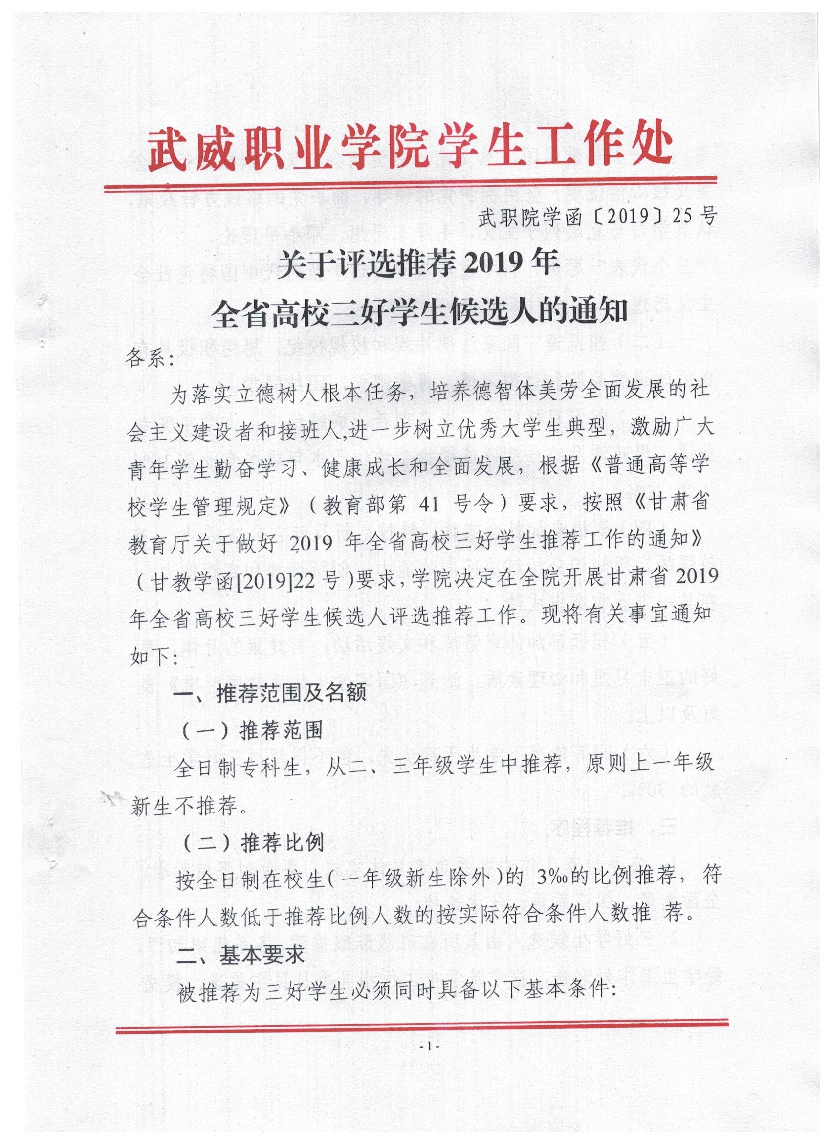 關(guān)于評選推薦2019年全省高校三好學(xué)生候選人的通知
