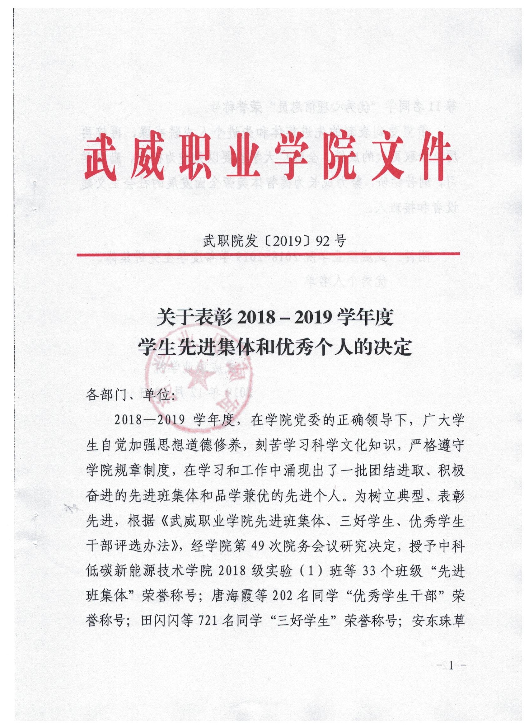 關(guān)于表彰2018-2019學(xué)年度學(xué)生先進(jìn)集體和優(yōu)秀個(gè)人的決定