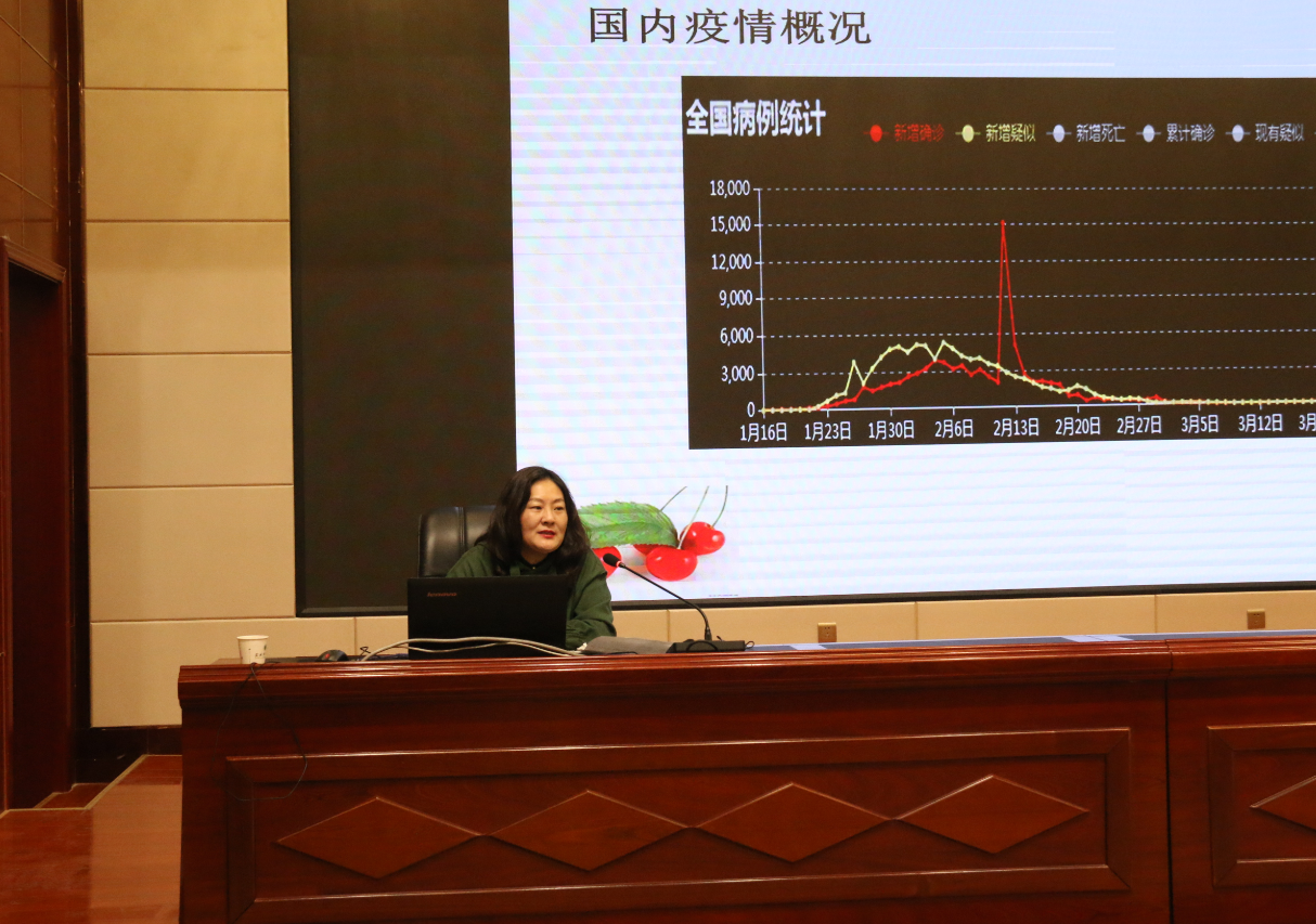 馬艷主任以《新冠肺炎疫情防控》為題,從國內(nèi)外疫情分析、對新冠肺炎的認(rèn)識、大專院校新冠肺炎疫情防控要求措施以及開學(xué)后應(yīng)該注意哪些問題等幾個方面做了深入講解。