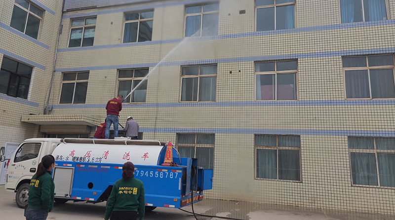 在行動現(xiàn)場,老師們和保潔人員手拿水桶、笤帚、抹布,認真清洗道路邊花壇、路沿石、配電箱、垃圾桶等服務(wù)設(shè)施,仔細擦拭路標路牌,認真清掃道路垃圾。并對沿街建筑物(崇技樓)外立面、窗戶、門頭牌匾進行高壓清洗。經(jīng)過徹底清洗,道路清潔有序,路標路牌煥然一新,各類花草樹木青翠欲滴,設(shè)施設(shè)備亮麗如新。