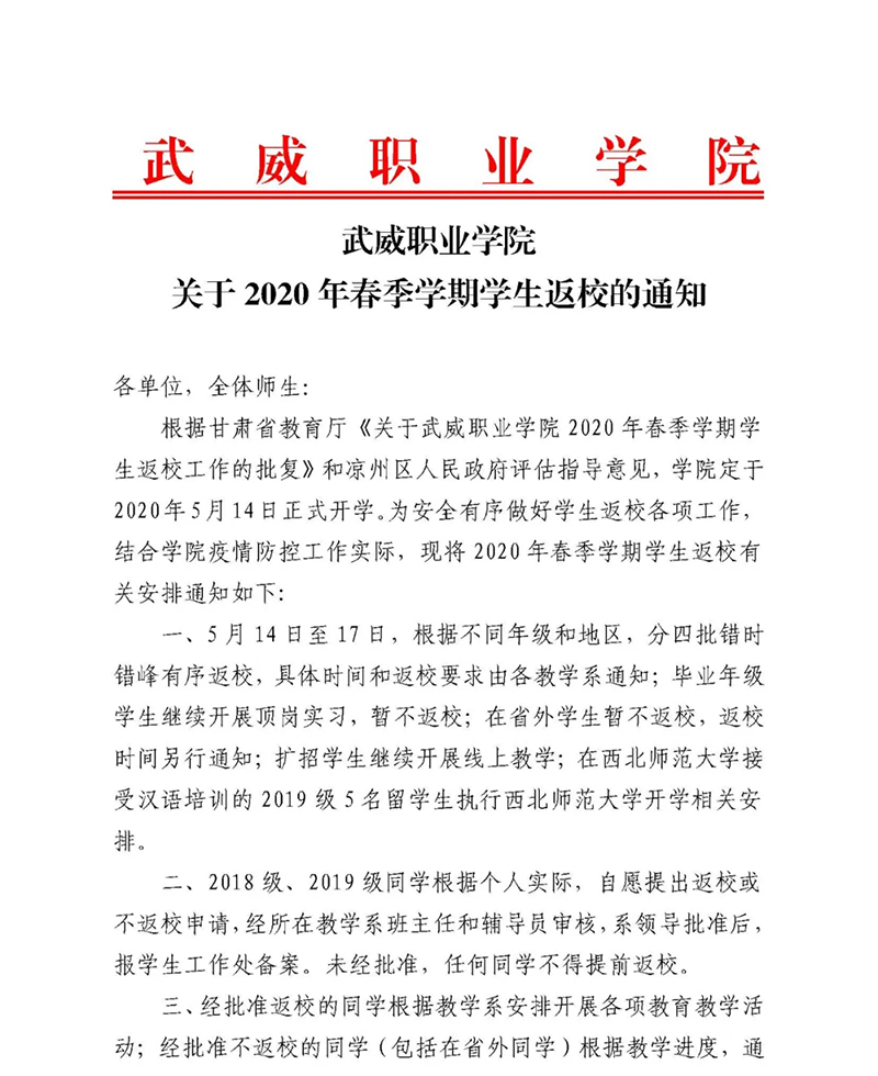 武威職業(yè)技術(shù)大學位于中國旅游標志之都、中國葡萄酒城、全國歷史文化名城、最美中國文化旅游城市——武威,是國家骨干高等職業(yè)院校、省級雙高校、省級示范校、省級優(yōu)質(zhì)校。
