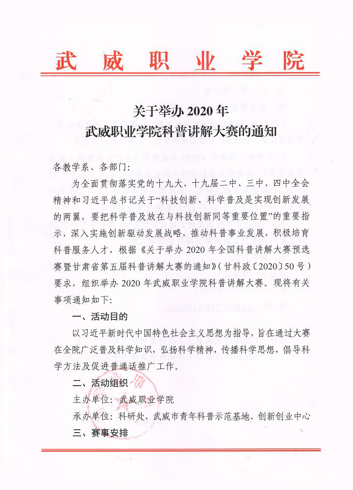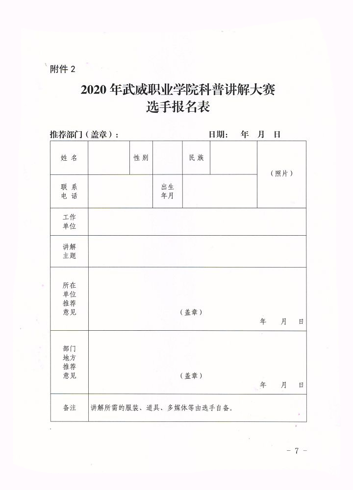 附件下載:2020年武威職業(yè)學(xué)院科普講解大賽報名表