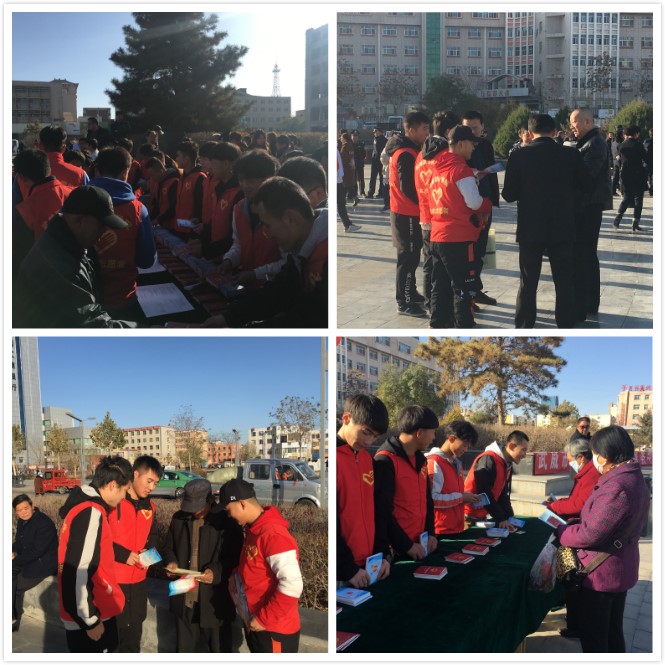 為進(jìn)一步助力全國(guó)文明城市創(chuàng)建,全面深入開(kāi)展普法工作,切實(shí)提升廣大市民的尊法、用法和守法意識(shí),營(yíng)造濃厚的全民普法氛圍,11月15日上午,學(xué)院應(yīng)市司法局、團(tuán)市委的要求,派出機(jī)械制造系“依法治國(guó)”宣講團(tuán),到文化廣場(chǎng)參加武威市“法律進(jìn)家庭,服務(wù)解民憂”主題活動(dòng)啟動(dòng)儀式。