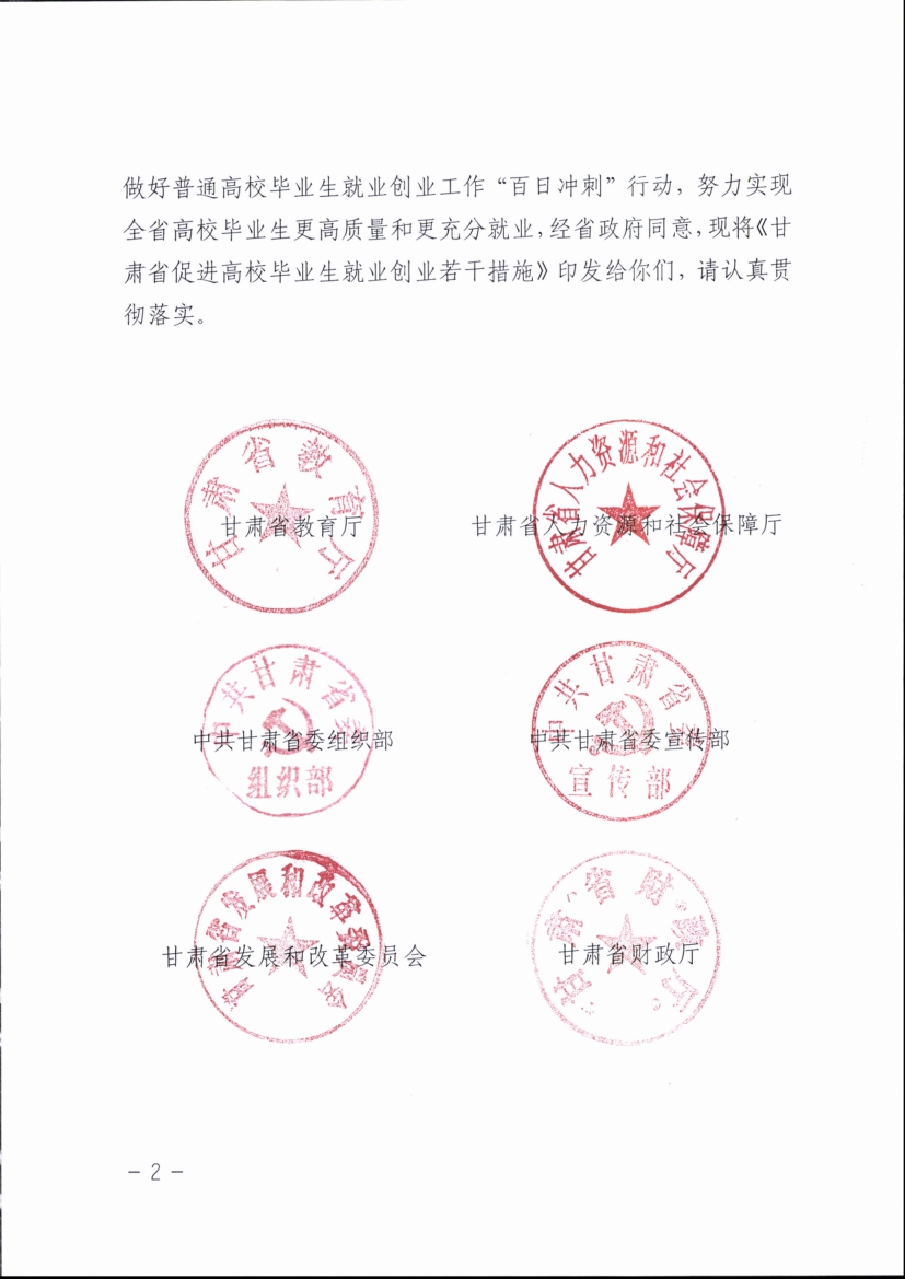 甘肅省教育廳等七部門關(guān)于印發(fā)《甘肅省促進(jìn)高校畢業(yè)生就業(yè)創(chuàng)業(yè)若干措施》的通知