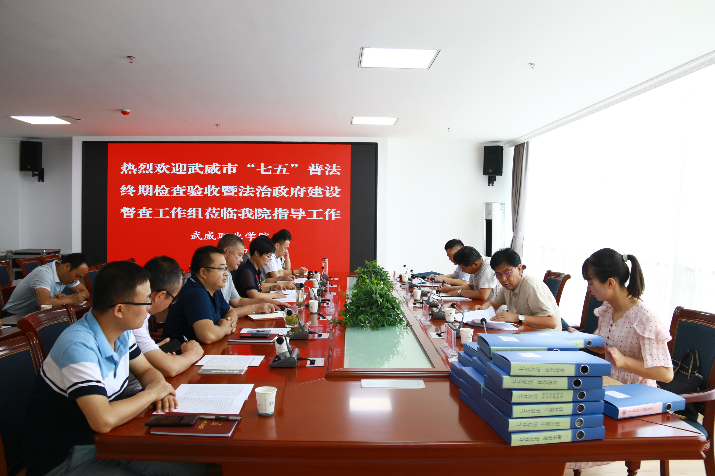 7月7日上午,武威市“七五”普法終期檢查驗(yàn)收第五督察組成員、武威市委宣傳部副調(diào)研員韋國富,市司法局黨組成員、副局長傅瑞川,市公共法律服務(wù)中心主任劉文元,市司法局組織人事科科員羅瑩深入我院對“七五”普法工作開展情況和法治政府建設(shè)工作進(jìn)行了終期驗(yàn)收督查。學(xué)院黨委委員、副院長何毅、王守云,相關(guān)部門負(fù)責(zé)人參加檢查驗(yàn)收。