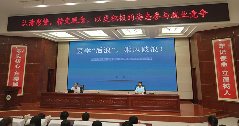7月12日晚,護(hù)理系在大學(xué)生活動中心菁英廳、明遠(yuǎn)樓211、213、311等四個會場舉辦“護(hù)理系2021屆畢業(yè)生就業(yè)指導(dǎo)講座”,邀請學(xué)院招生就業(yè)處副處長董鵬同志作“醫(yī)學(xué)后浪、乘風(fēng)破浪”為主題的專題講座。護(hù)理系黨總支書記張建輝主持講座,護(hù)理系2021屆畢業(yè)班班主任、全體輔導(dǎo)員及2021屆全體畢業(yè)生共計(jì)647人參加講座。