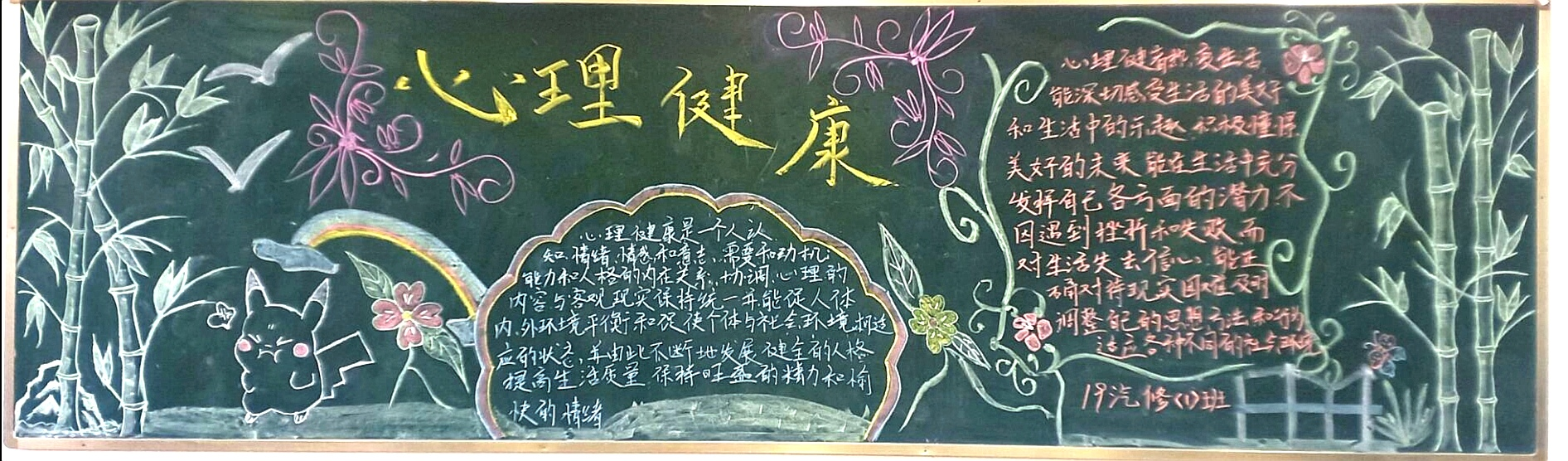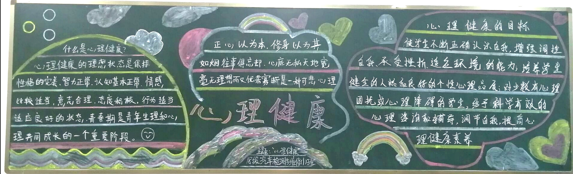 為進(jìn)一步提高大學(xué)生的心理素質(zhì),促進(jìn)大學(xué)生的身心健康和諧,宣傳普及心理健康知識,深入開展心理健康教育,我系結(jié)合學(xué)院特點(diǎn),突出專業(yè)優(yōu)勢,在積極承擔(dān)和參與學(xué)校心理健康活動月的團(tuán)日活動的同時,各班開展了豐富多彩的以“心理健康”為主題的黑板報。